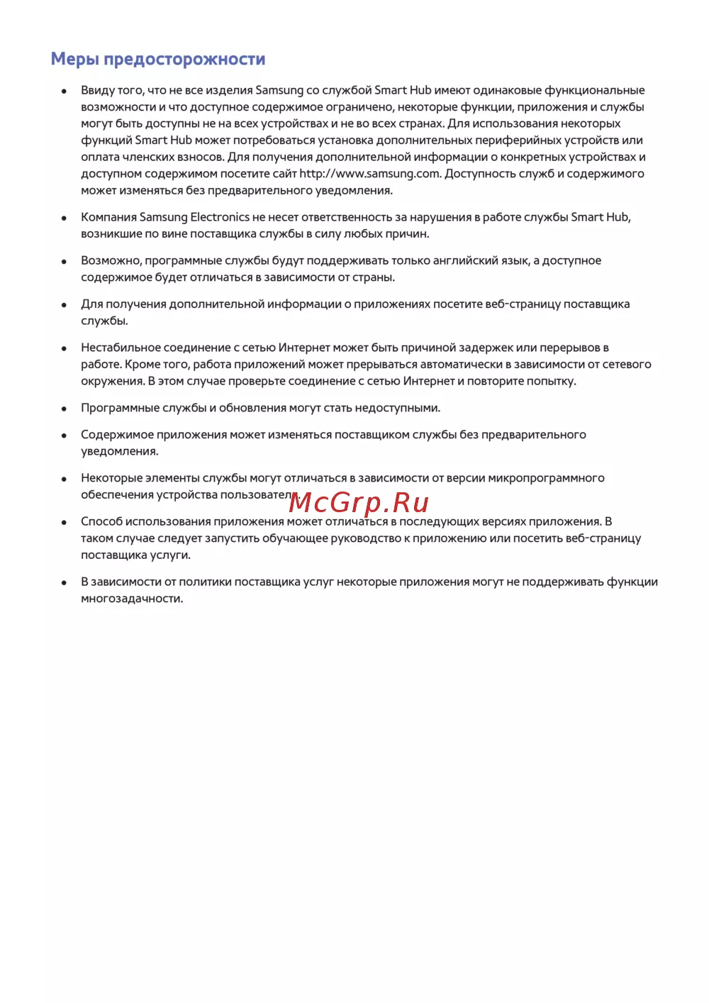 Узнайте о мерах предосторожности при использовании Smart Hub. Некоторые функции могут быть недоступны в зависимости от устройства и страны. Проверьте соединение с интернетом.