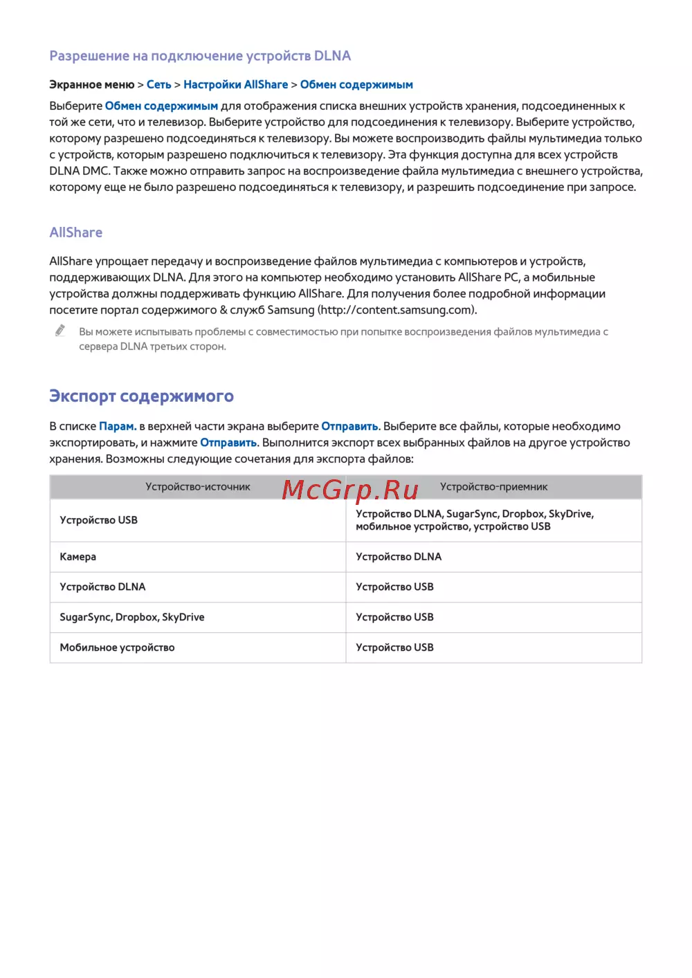 устройства должны поддерживать функцию AllShare. Для получения более подробной информации