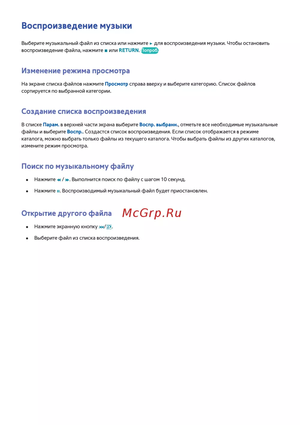 - Поддерживаемые форматы музыкальных файлов p.180