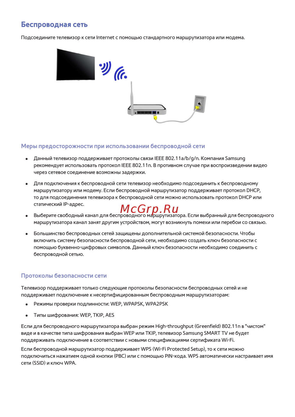 виде и в качестве типа шифрования выбран WEP или TKIP, телевизор Samsung SMART TV не будет