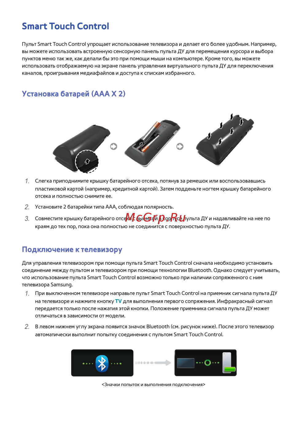 Для управления телевизором при помощи пульта Smart Touch Control сначала необходимо установить