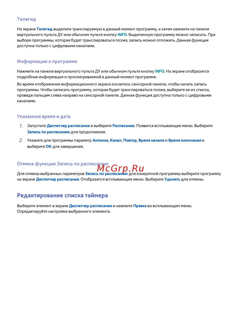 - Запись по расписанию timeshift p.198