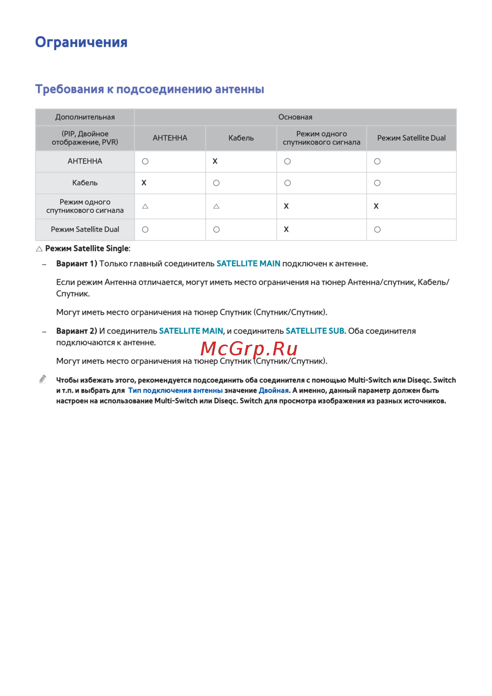 Могут иметь место ограничения на тюнер Спутник (Спутник/Спутник).