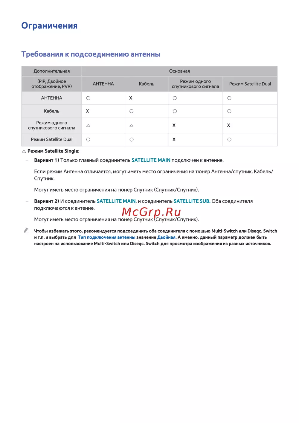 Узнайте о требованиях к подключению антенны, режимах работы и возможных ограничениях. Подключение через Multi-Switch или Diseqc для оптимального просмотра.