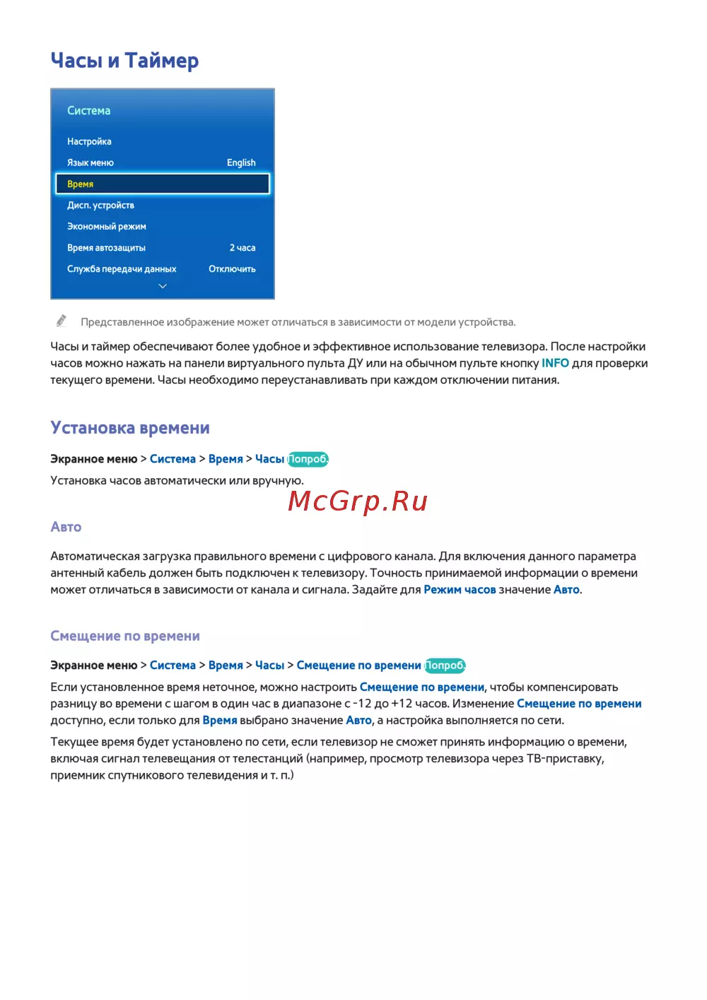 Часы и таймер обеспечивают более удобное и эффективное использование телевизора. После настройки
