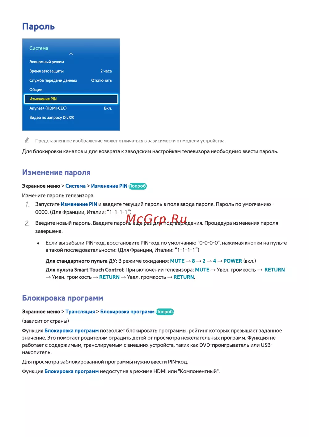 Samsung UE40F6540AB — как изменить PIN-код и заблокировать программы на телевизоре [117/194]