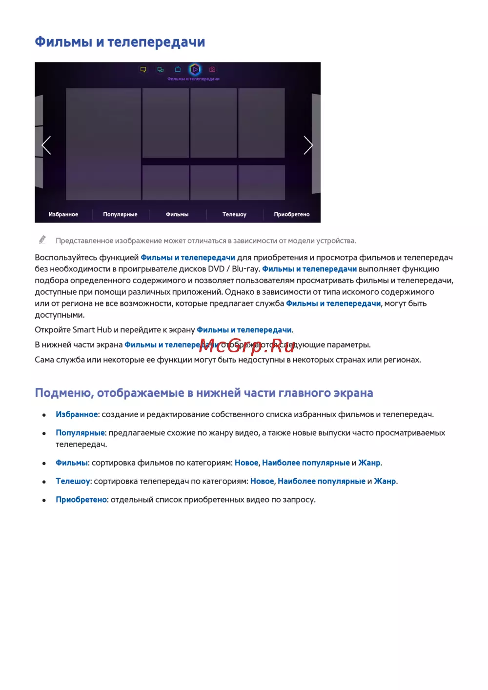 или от региона не все возможности, которые предлагает служба Фильмы и телепередачи, могут быть