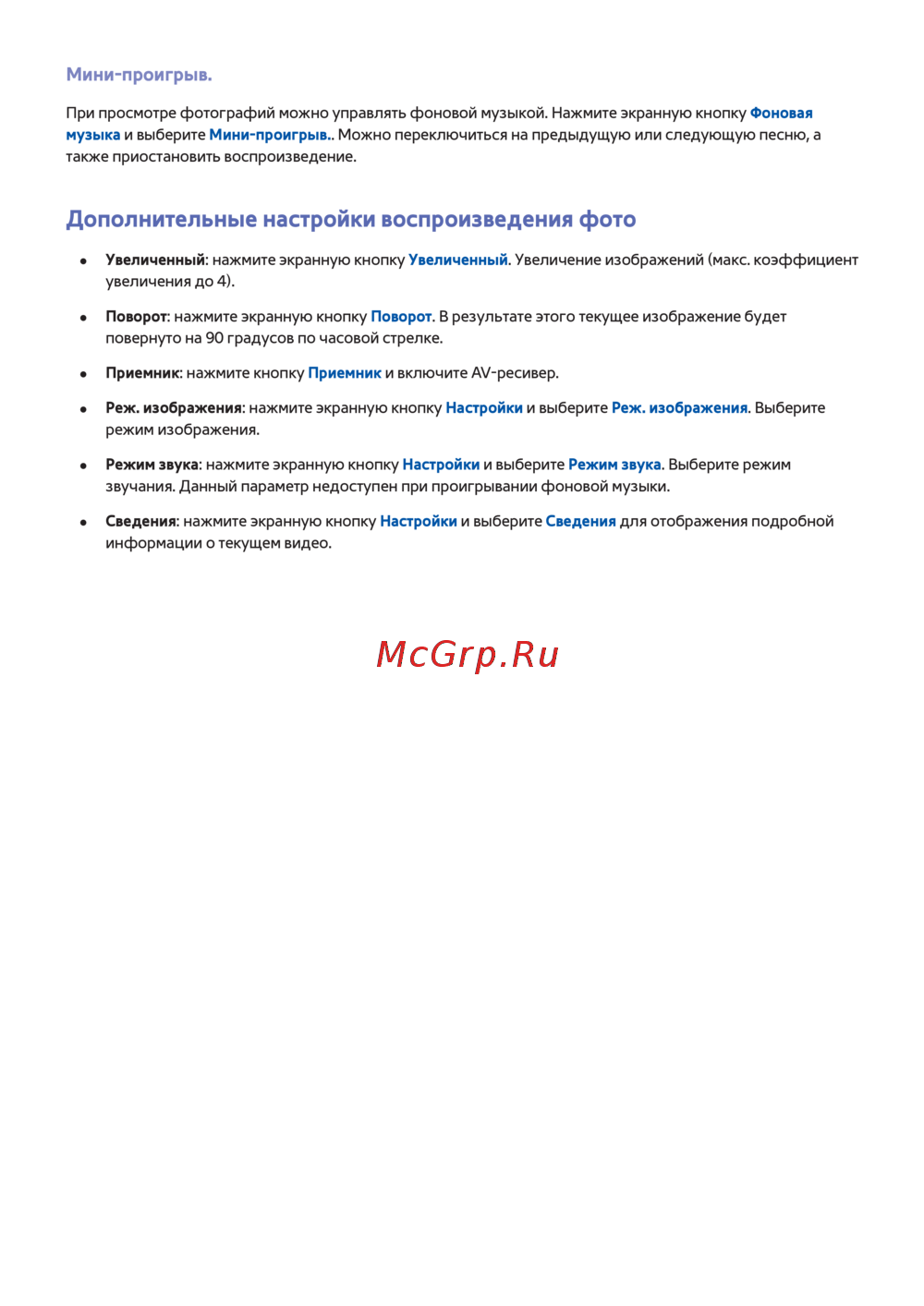 Дополнительные настройки воспроизведения фото
