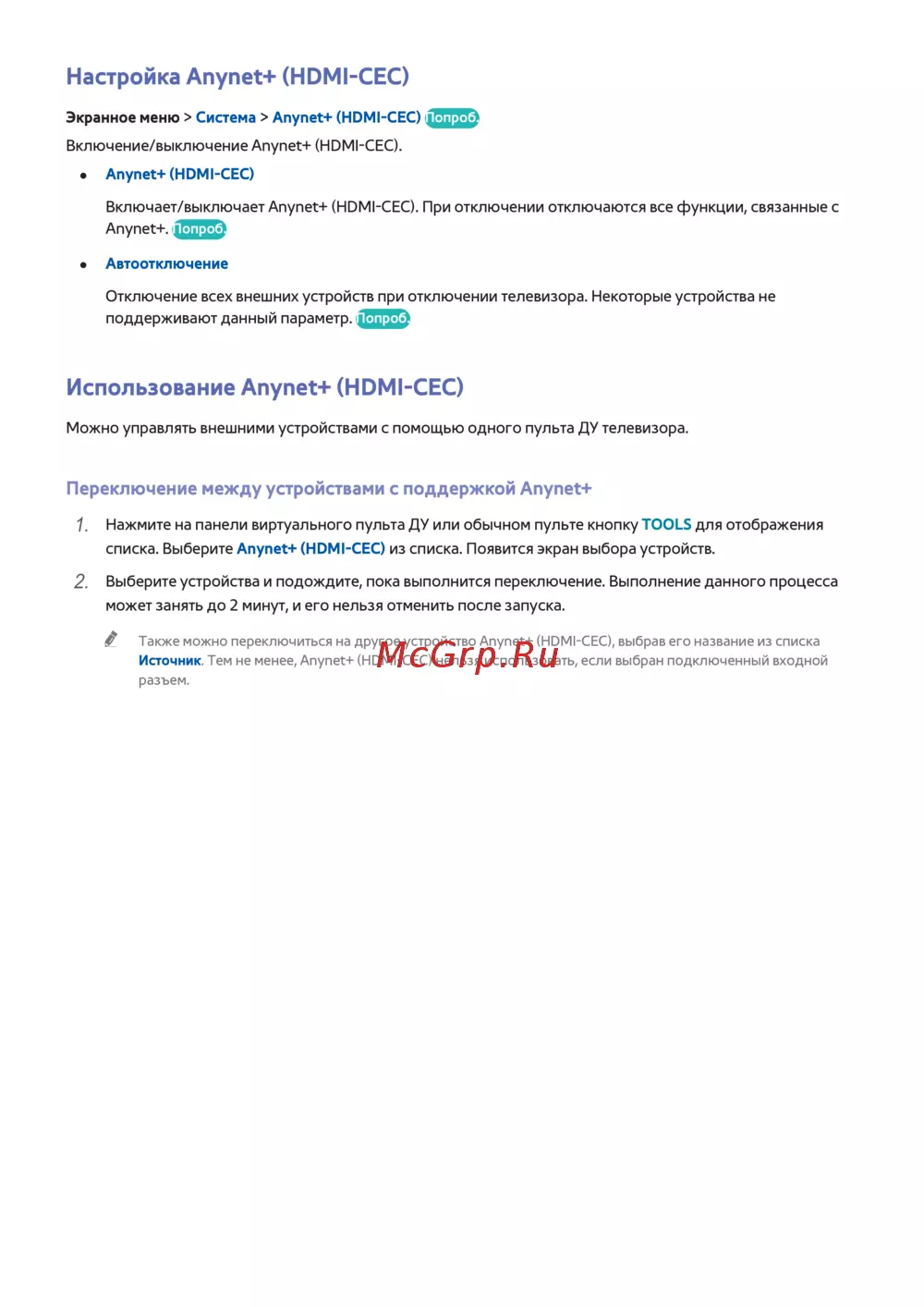 Источник. Тем не менее, Anynet+ (HDMI-CEC) нельзя использовать, если выбран подключенный входной