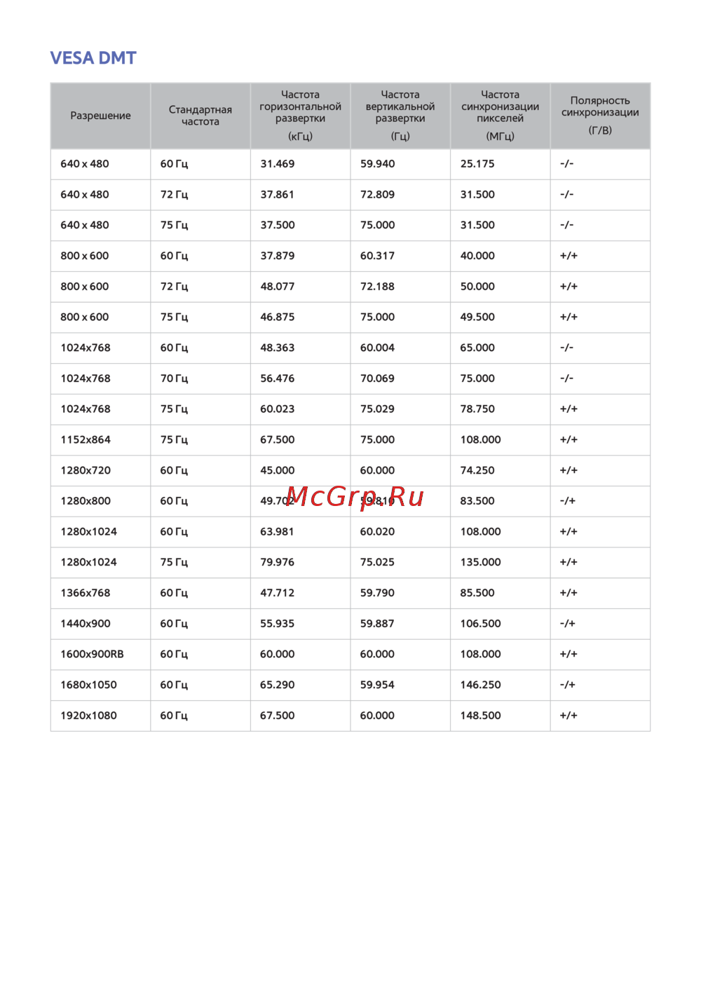 1152x864 75 Гц 67.500 75.000 108.000 +/+