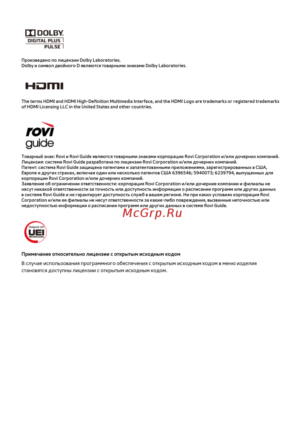 Лицензия: система Rovi Guide разработана по лицензии Rovi Corporation и/или дочерних компаний.