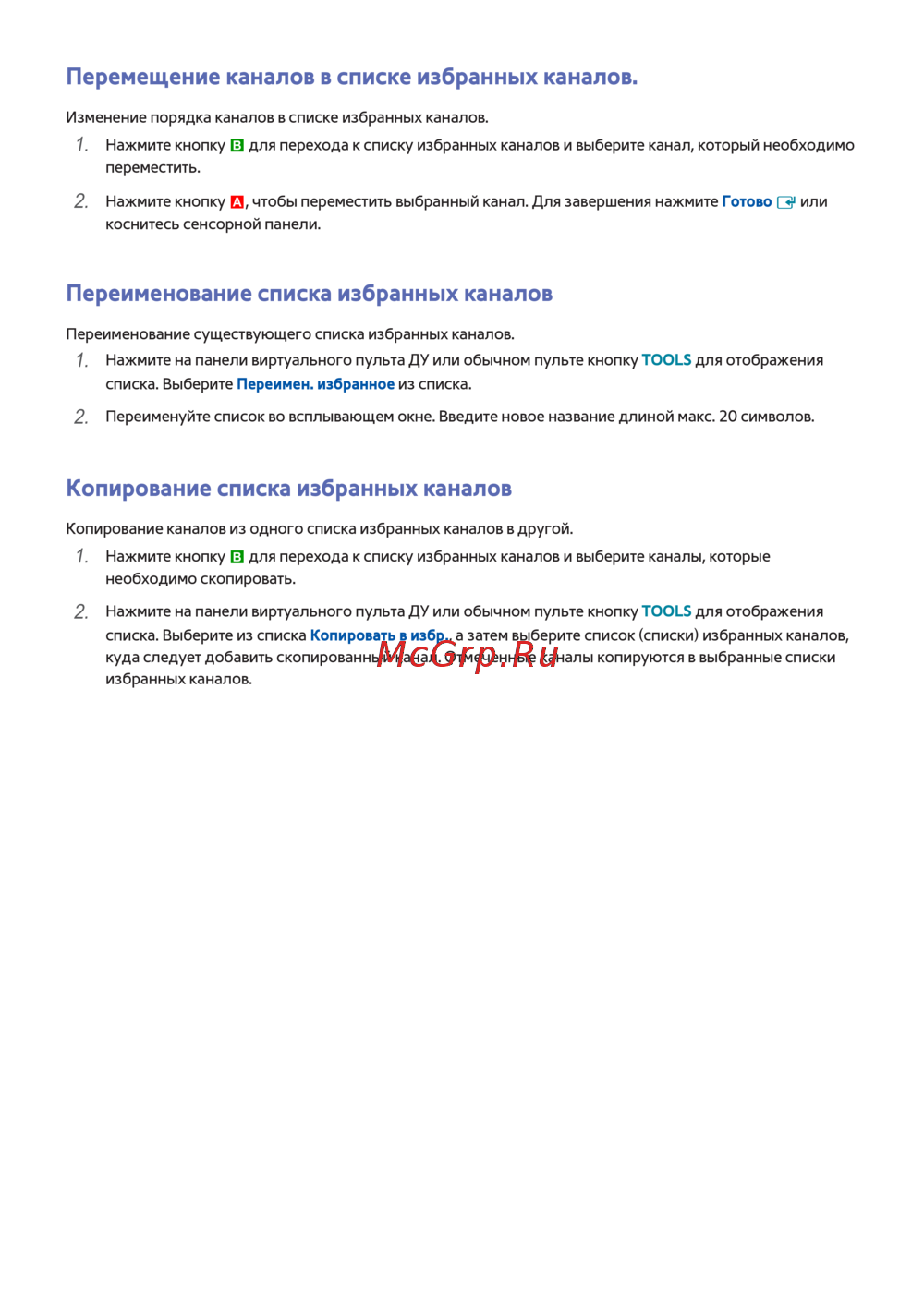 Samsung UE40F6540AB — как управлять списком избранных каналов: перемещение и переименование [33/194]