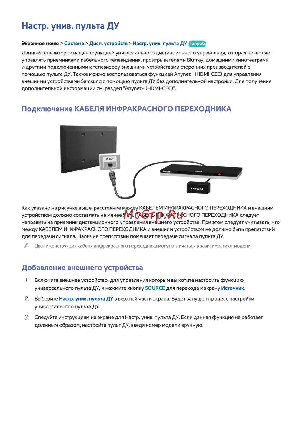 внешними устройствами Samsung с помощью пульта ДУ без дополнительной настройки. Для получения