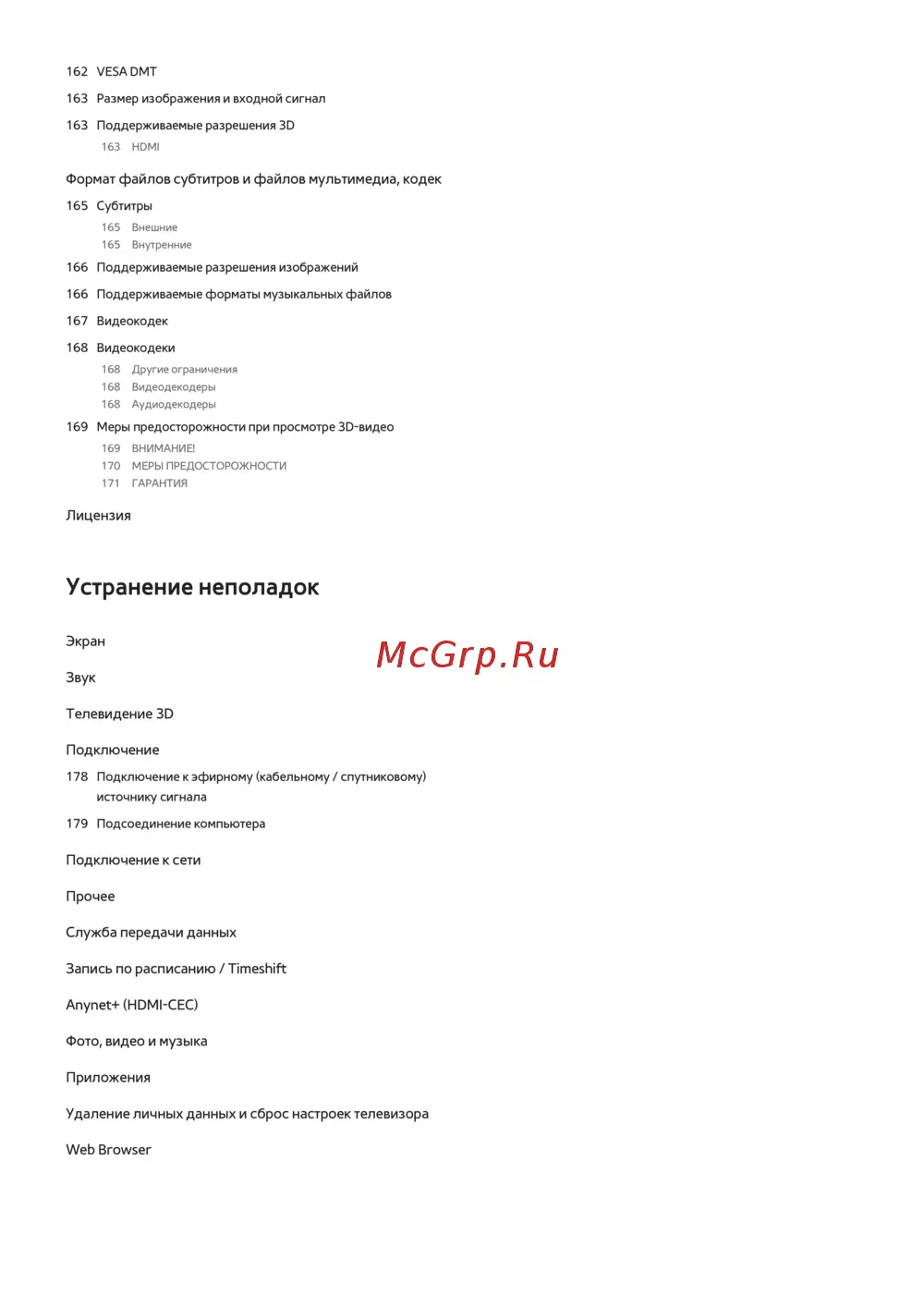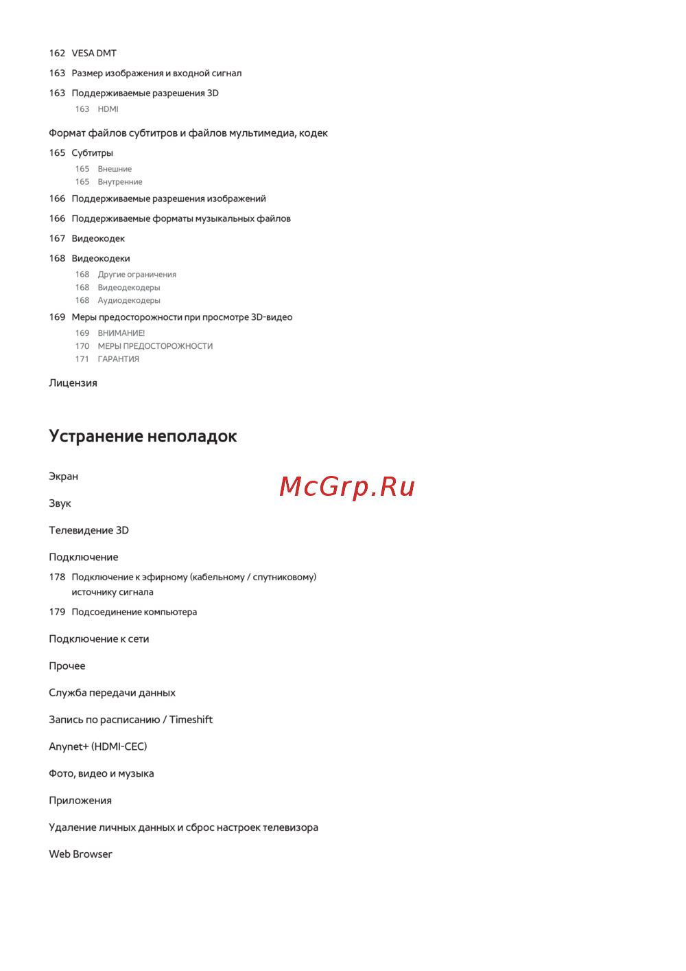 - Условия гарантии p.178