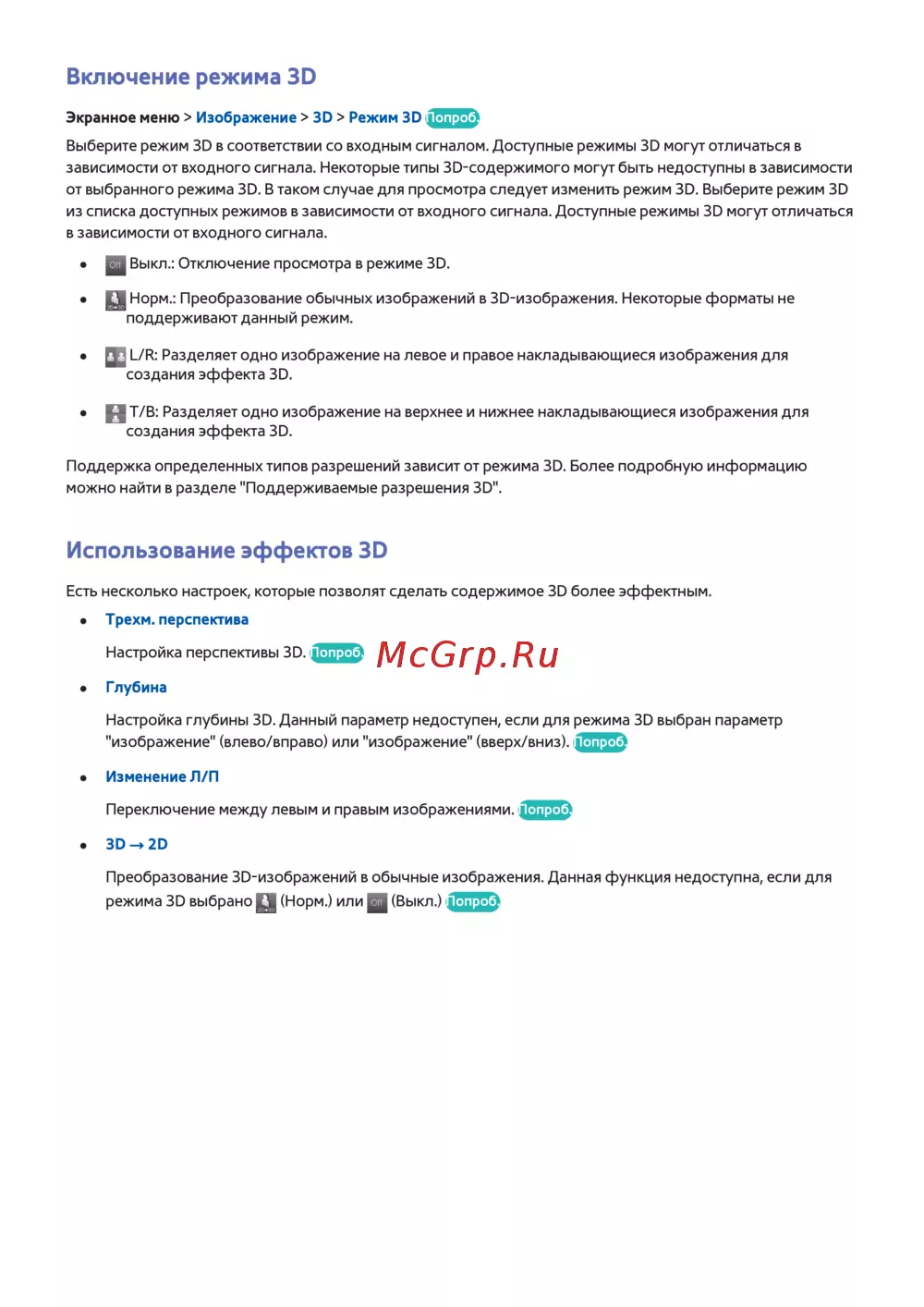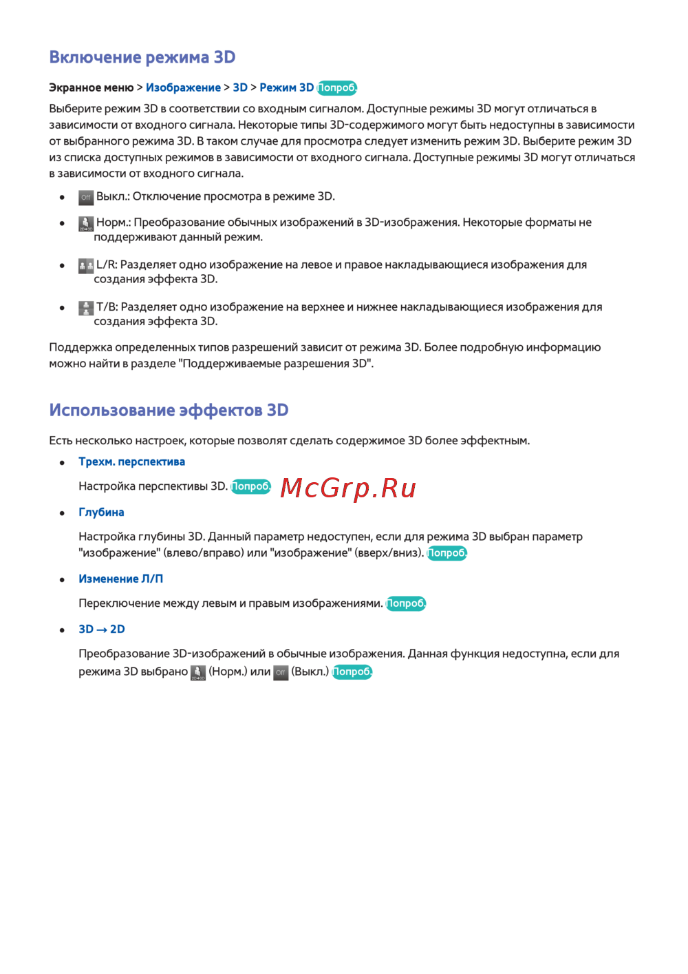 от выбранного режима 3D. В таком случае для просмотра следует изменить режим 3D. Выберите режим 3D