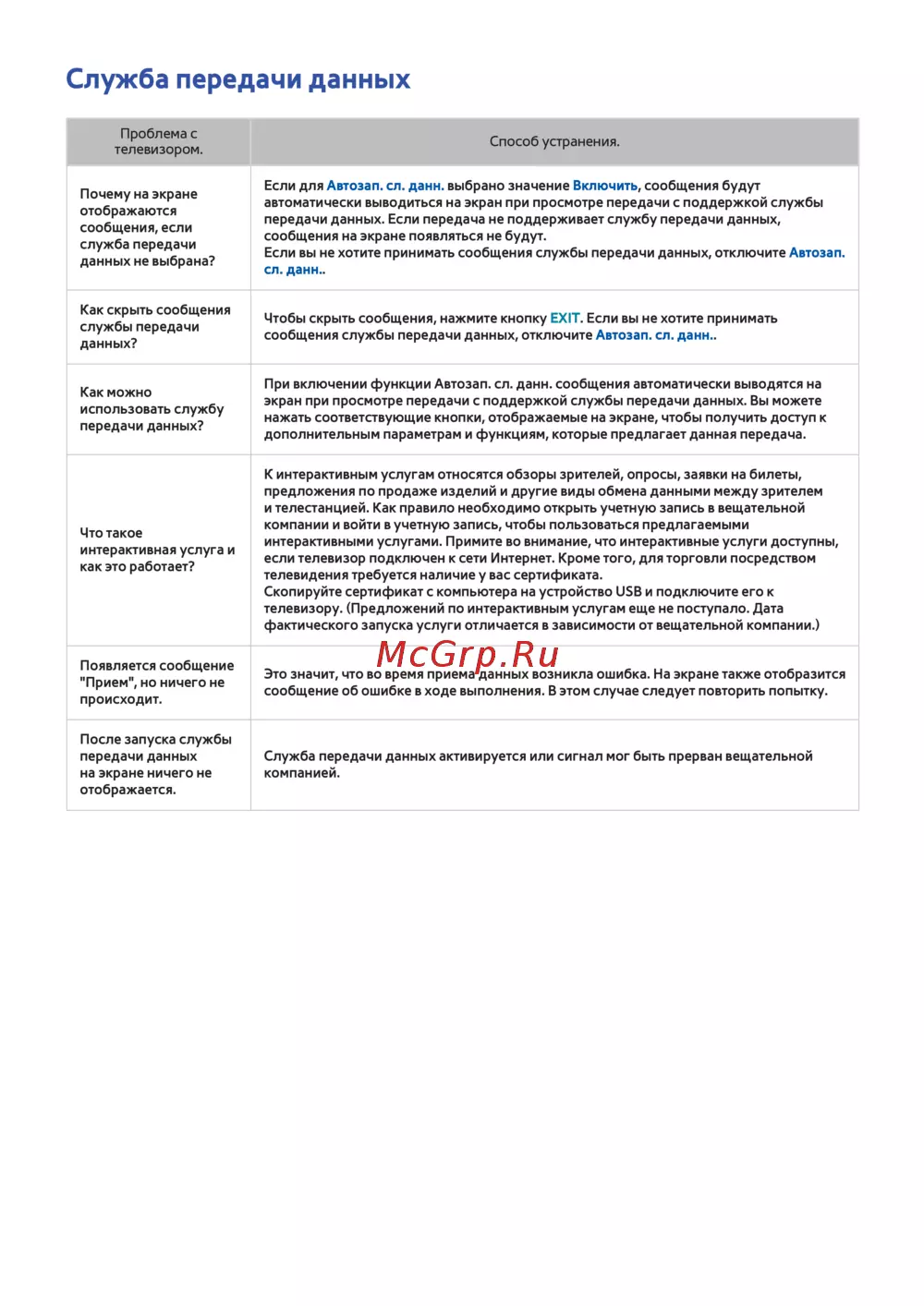 Samsung UE46F8500AT — решение проблем с телевизором и службой передачи данных [197/202]