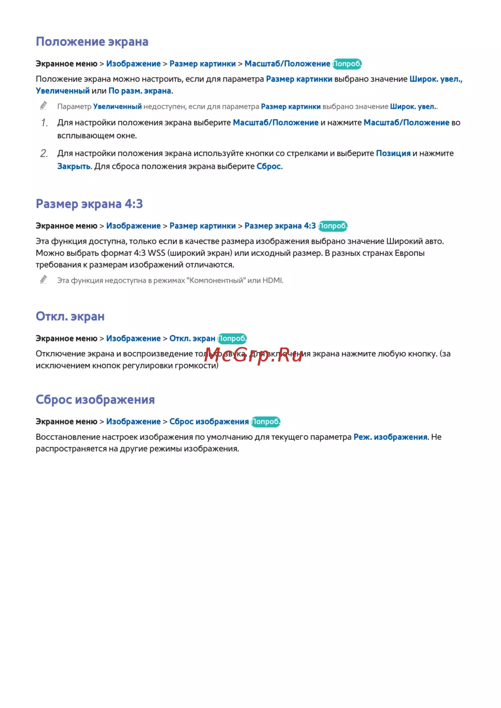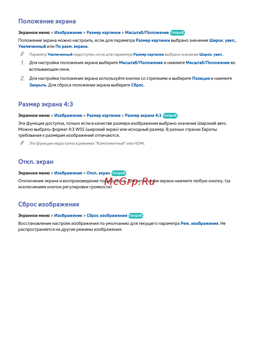 Samsung UE55F8500AT — настройка положения экрана и размеров изображения на устройстве [104/202]