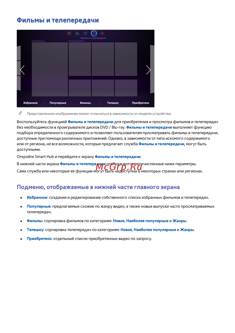 или от региона, не все возможности, которые предлагает служба Фильмы и телепередачи, могут быть