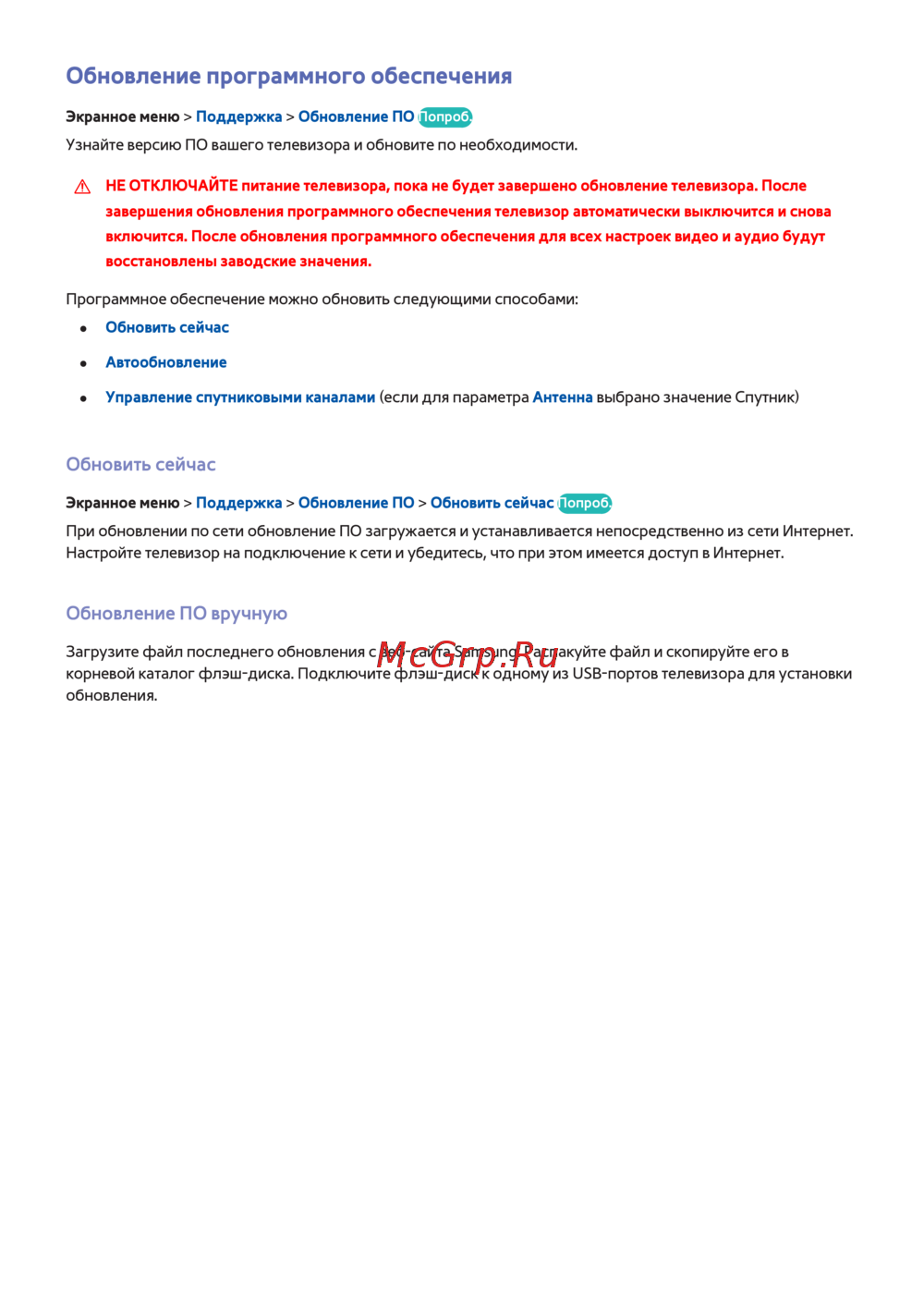 завершения обновления программного обеспечения телевизор автоматически выключится и снова