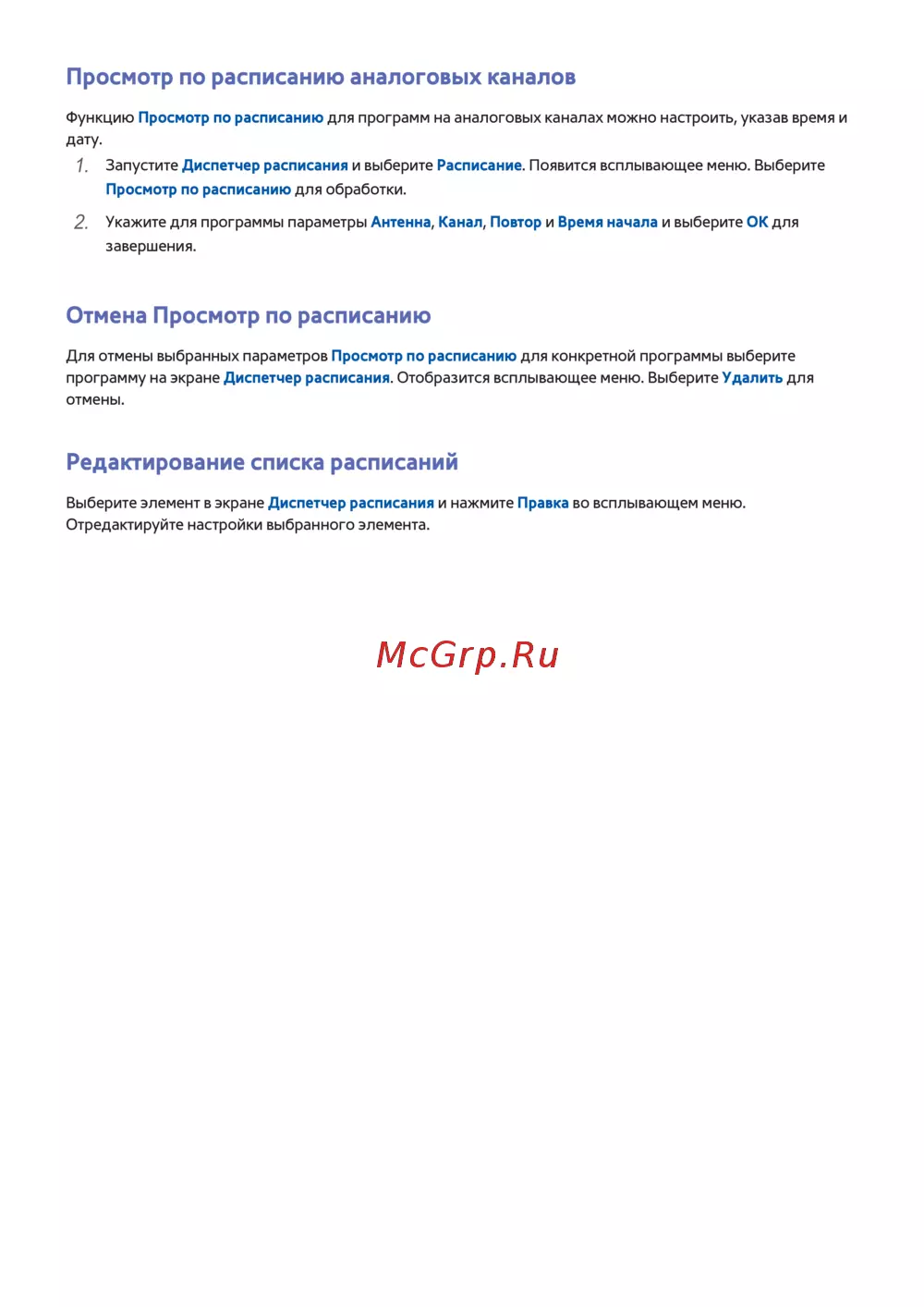Для отмены выбранных параметров Просмотр по расписанию для конкретной программы выберите