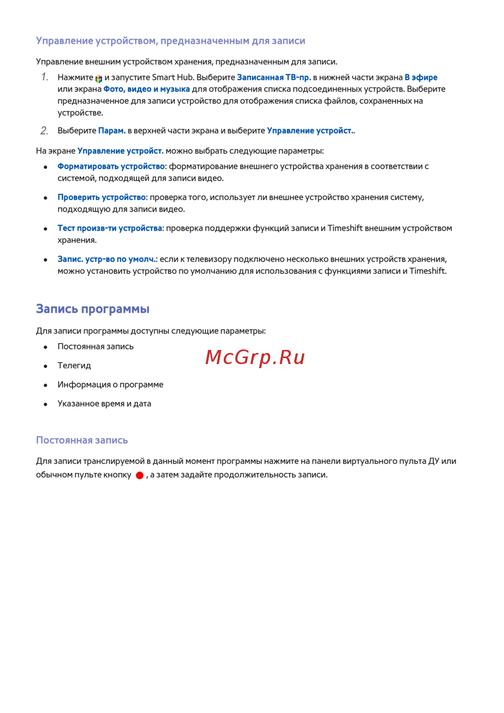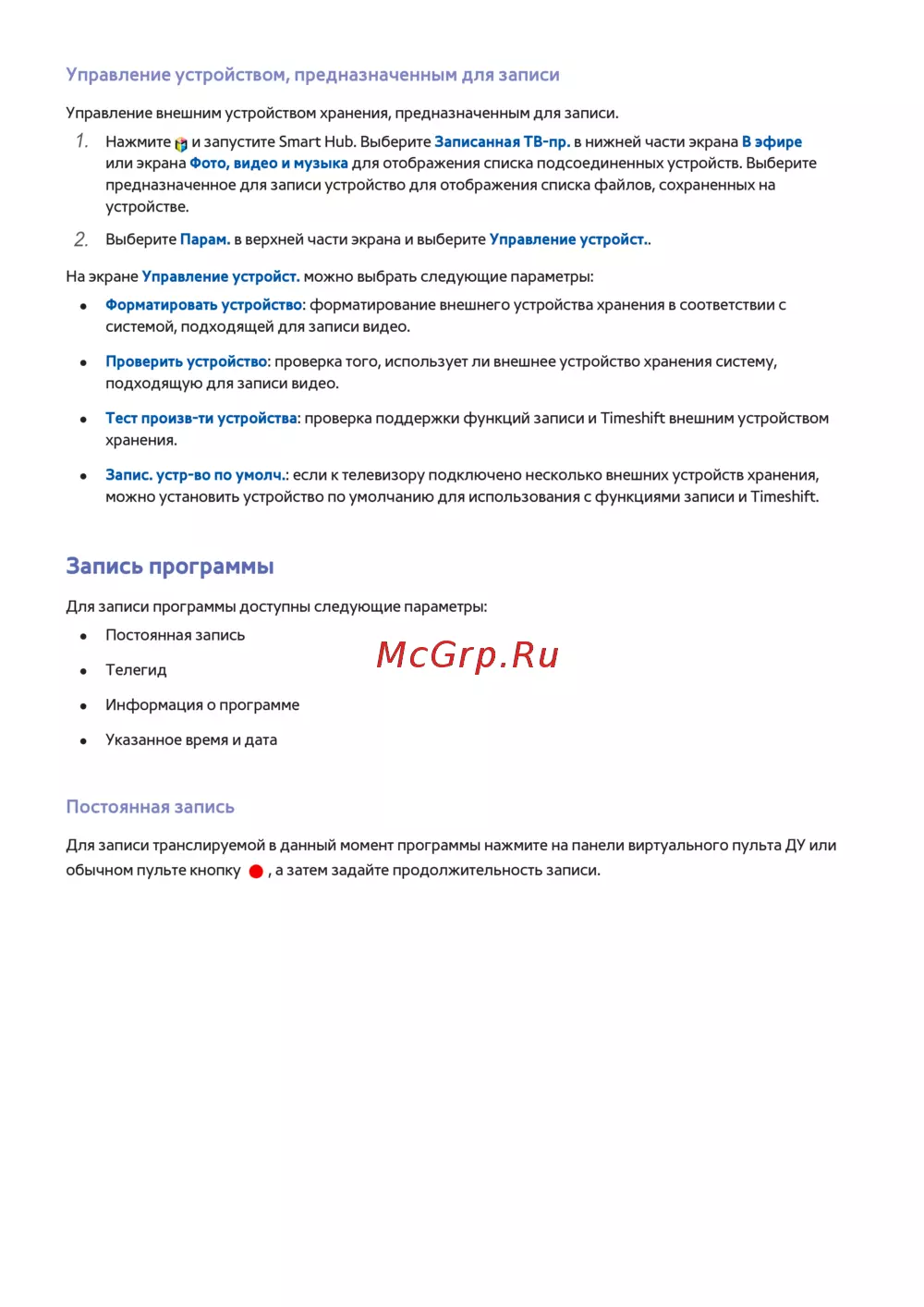 Запис. устр-во по умолч.: если к телевизору подключено несколько внешних устройств хранения,