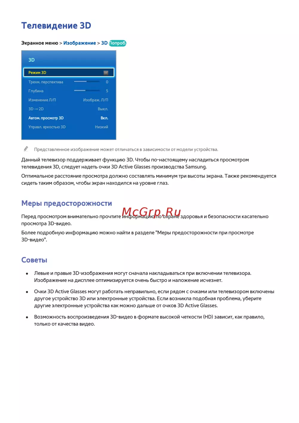 Более подробную информацию можно найти в разделе "Меры предосторожности при просмотре