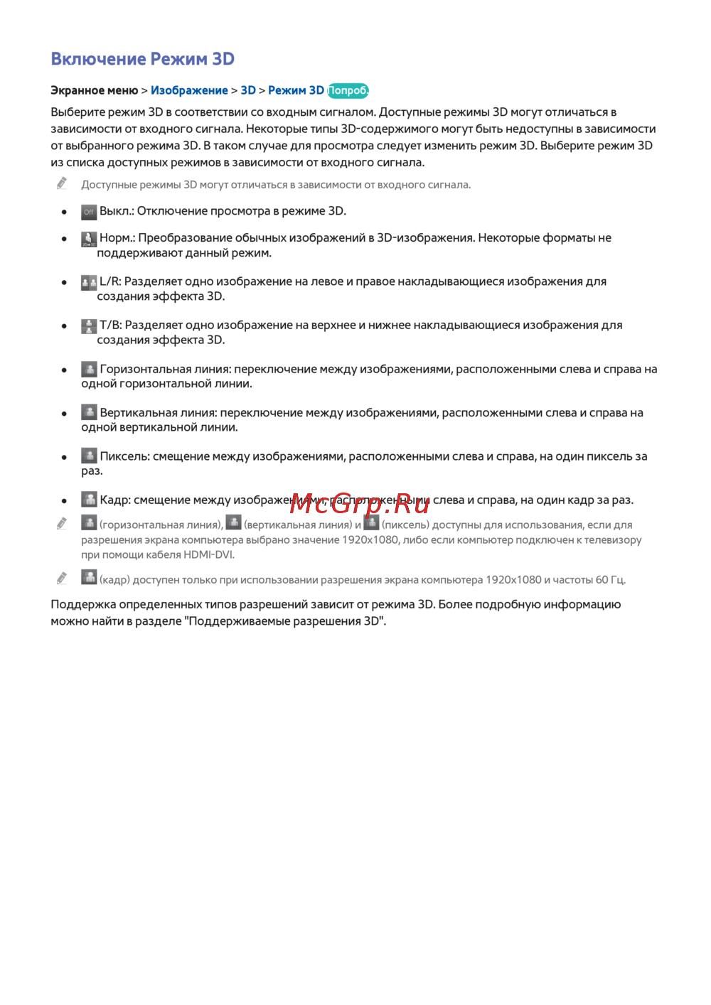 Поддержка определенных типов разрешений зависит от режима 3D. Более подробную информацию