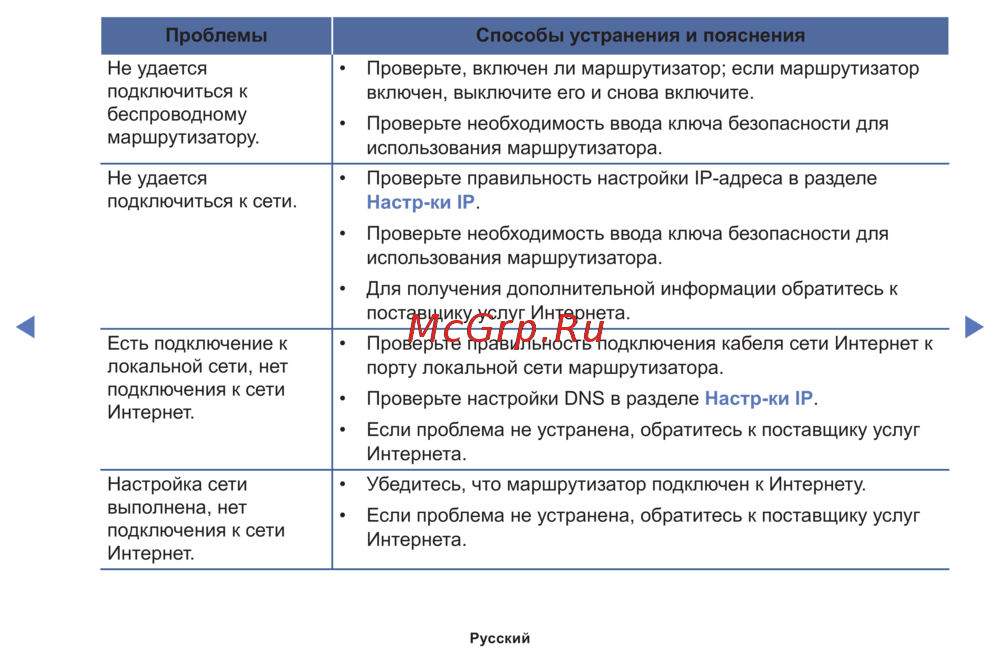 - При возникновении сбоя подключения к проводной сети используйте следующую информацию p.137