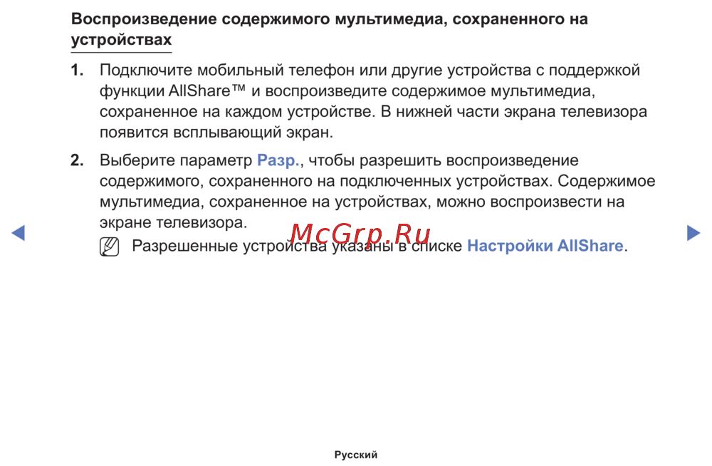 Samsung UE40F6130AK — воспроизведение мультимедиа с мобильных устройств на телевизоре [145/151]