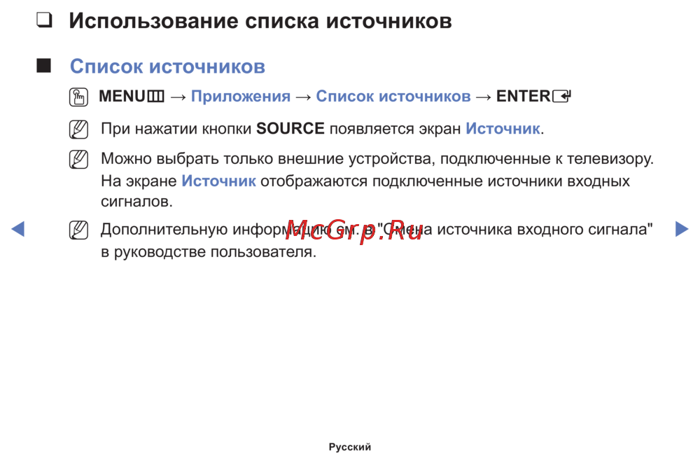 Дополнительную информацию см. в "Смена источника входного сигнала"