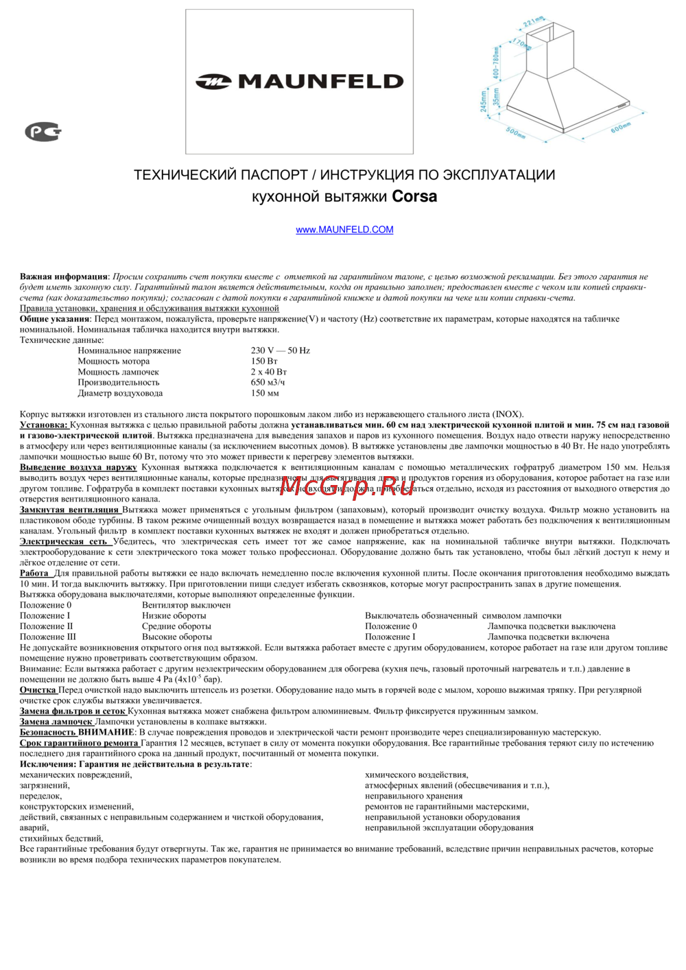 Maunfeld CORSA — инструкция по эксплуатации кухонной вытяжки: важные советы [1/2]