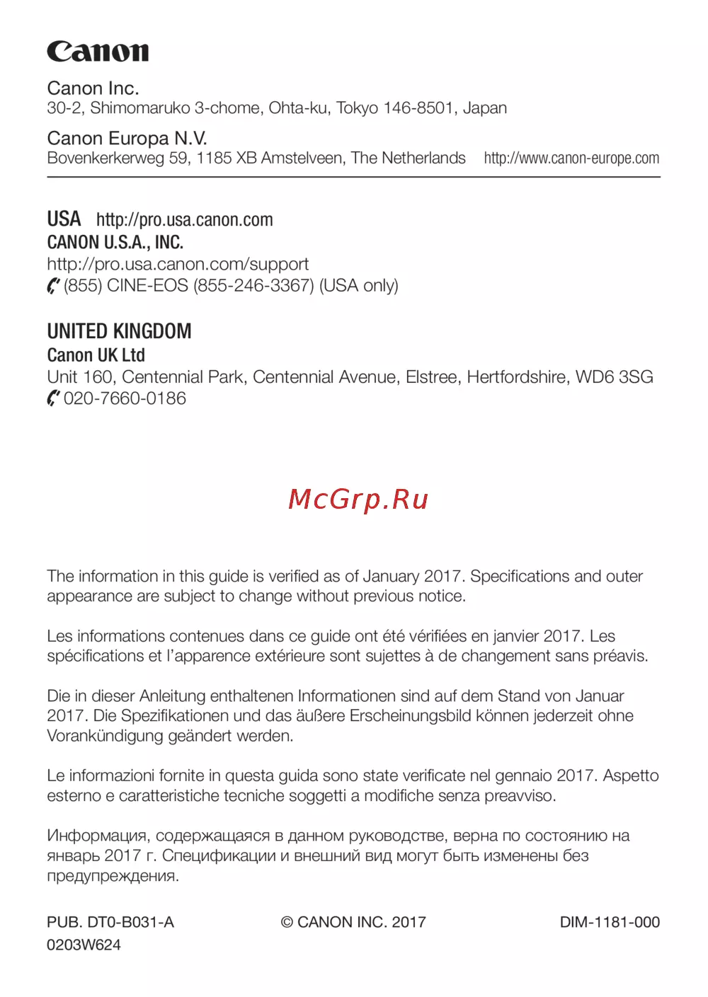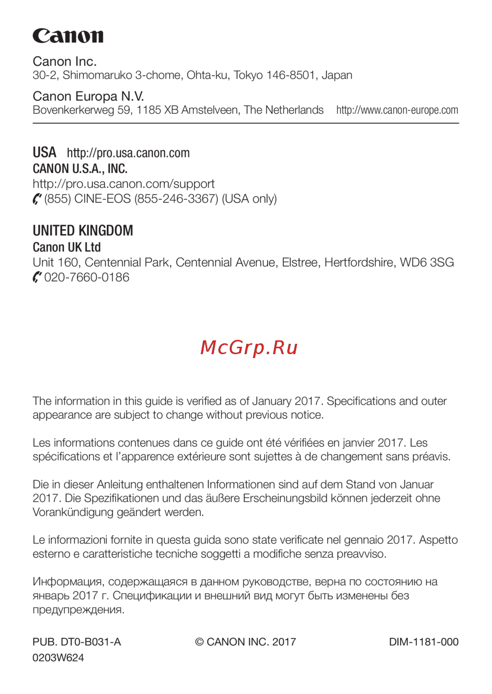 PUB. DT0-B031-A © CANON INC. 2017 DIM-1181-000