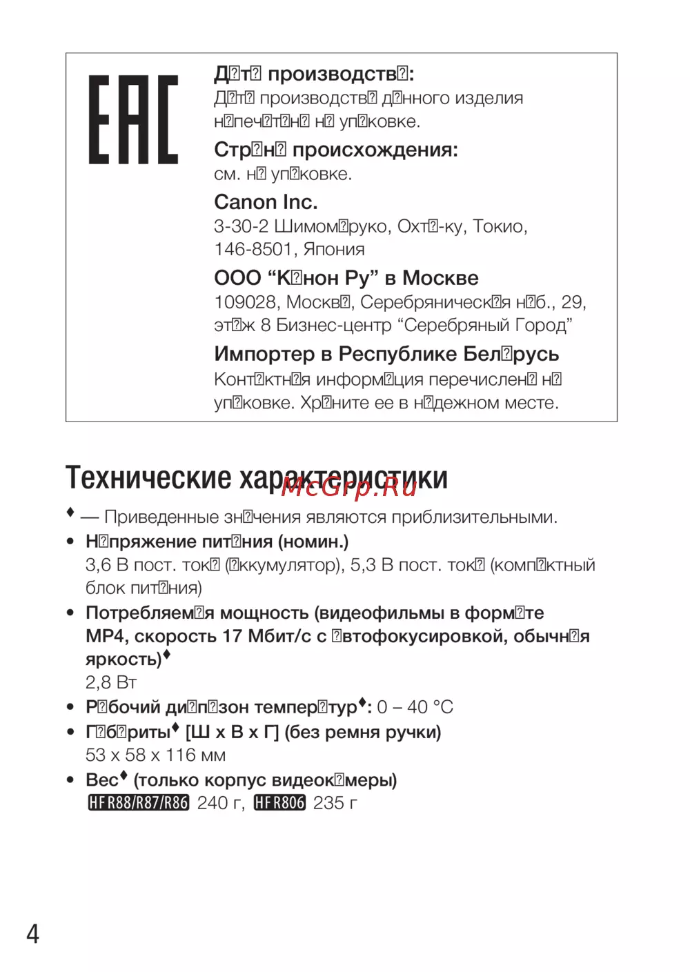 ![Canon LEGRIA HF R806 [4/29] Дата производства](/views2/1249083/page4/bg4.png)
