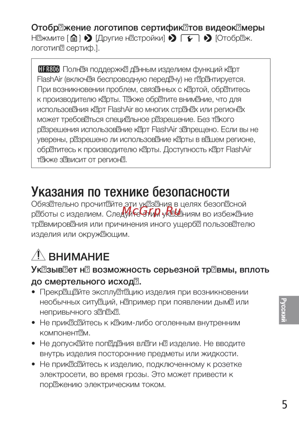 ![Canon LEGRIA HF R806 [5/29] Указывает на возможность серьезной травмы вплоть до смертельного исхода](/views2/1249083/page5/bg5.png)