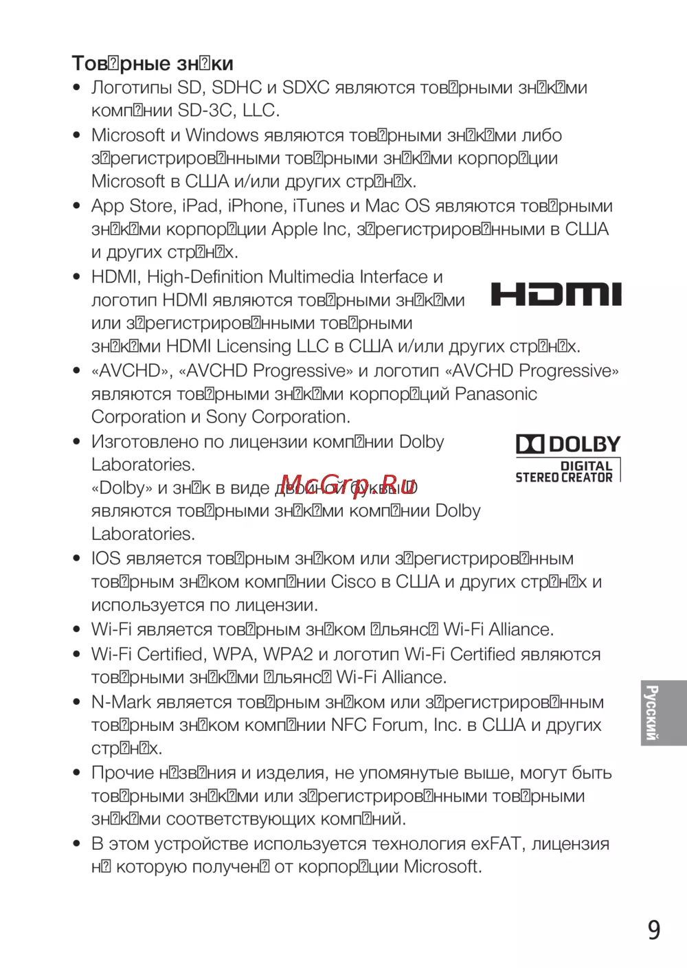 ![Canon LEGRIA HF R806 [9/29] Товарные знаки](/views2/1249083/page9/bg9.png)