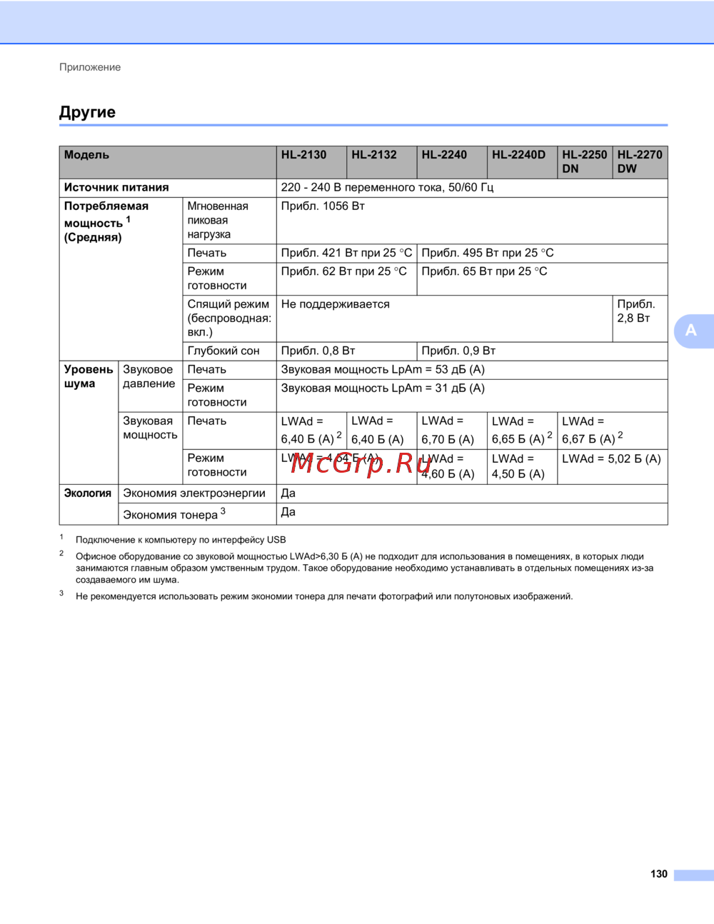 Brother HL-2130R — информация о подключении и характеристиках офисного оборудования [134/154]