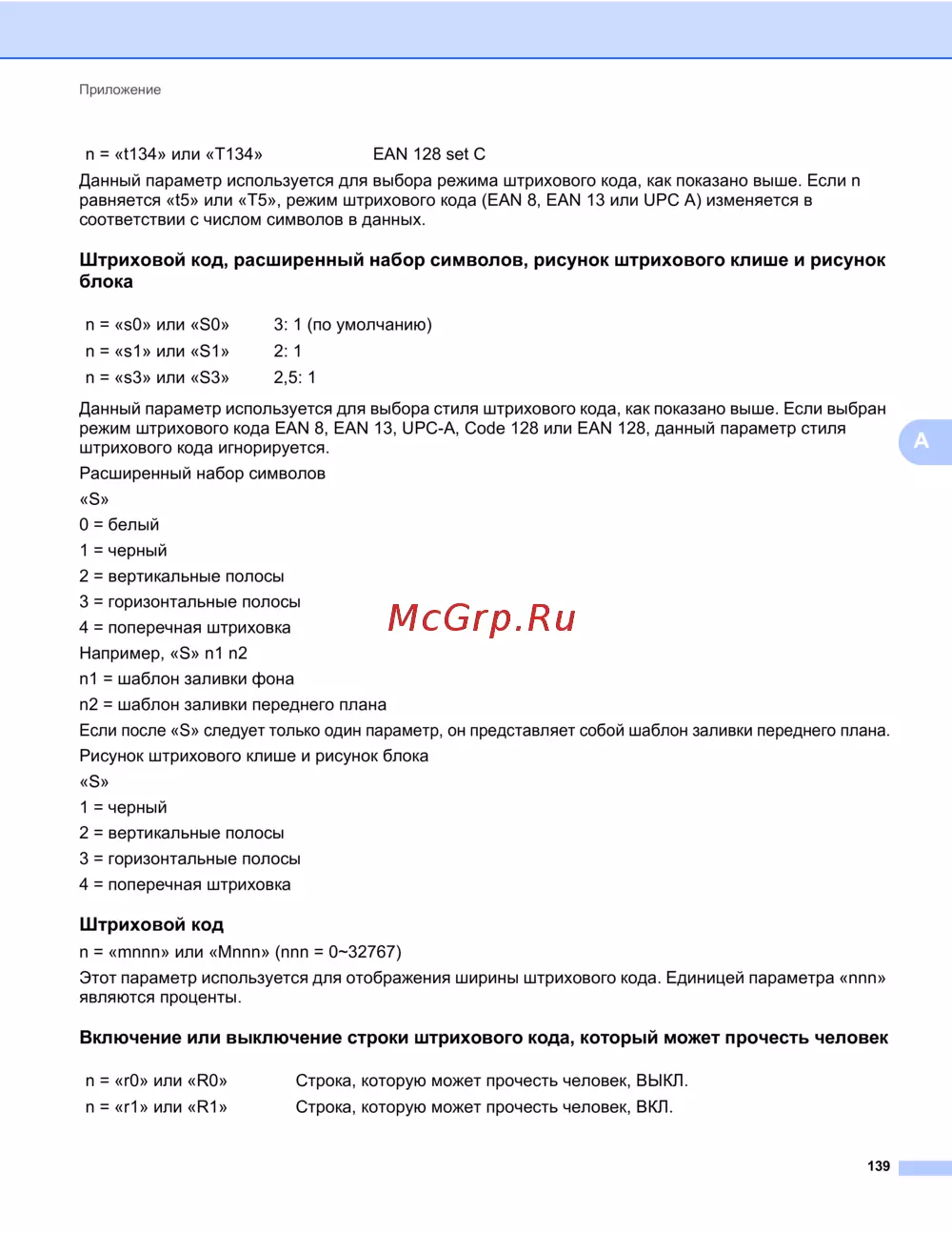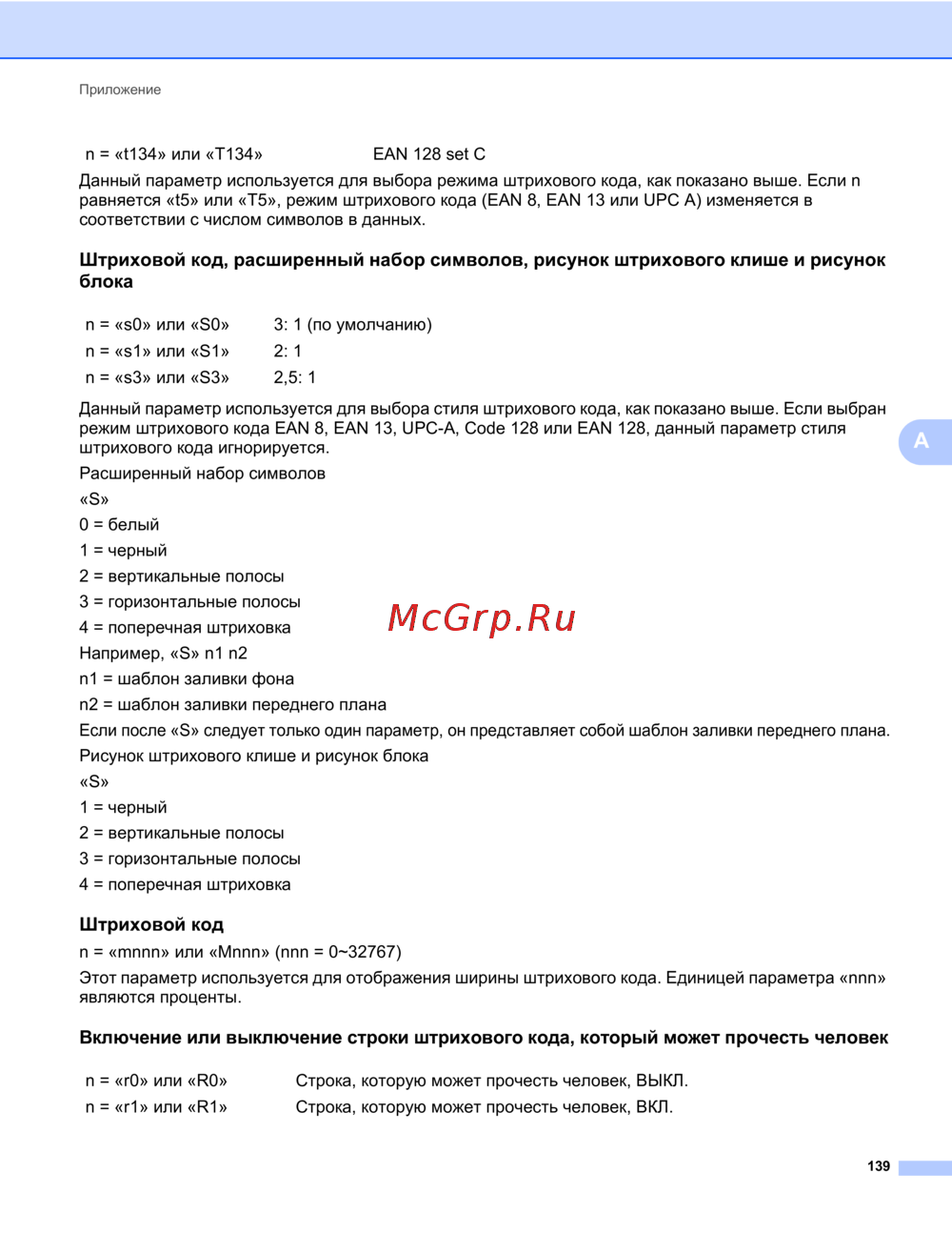 - Смещение по оси y штрихового кода и расширенного набора символов p.144