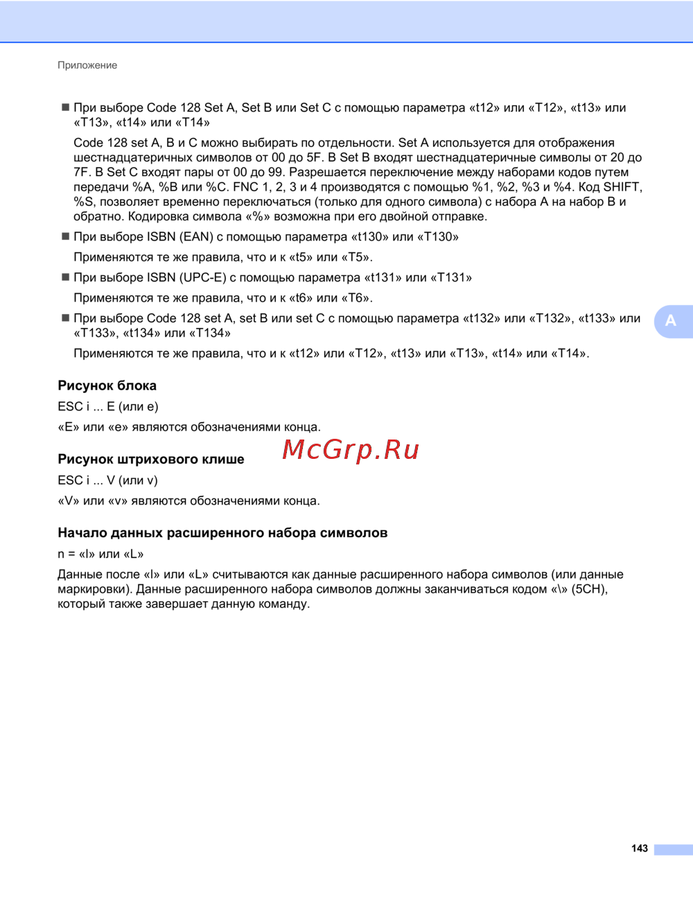 - Смещение по оси y штрихового кода и расширенного набора символов p.144