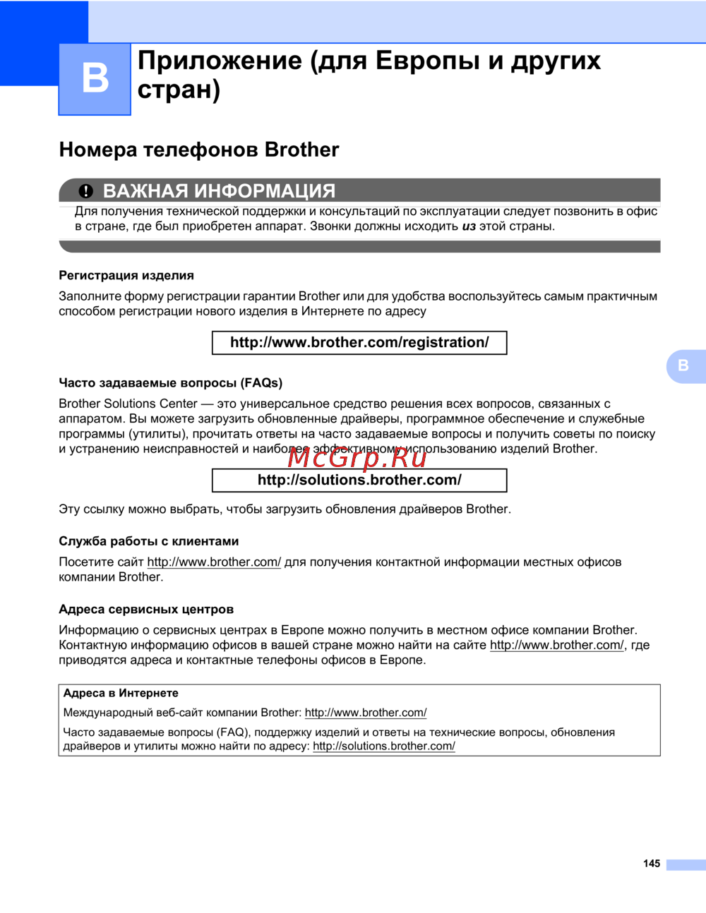 и устранению неисправностей и наиболее эффективному использованию изделий Brother.