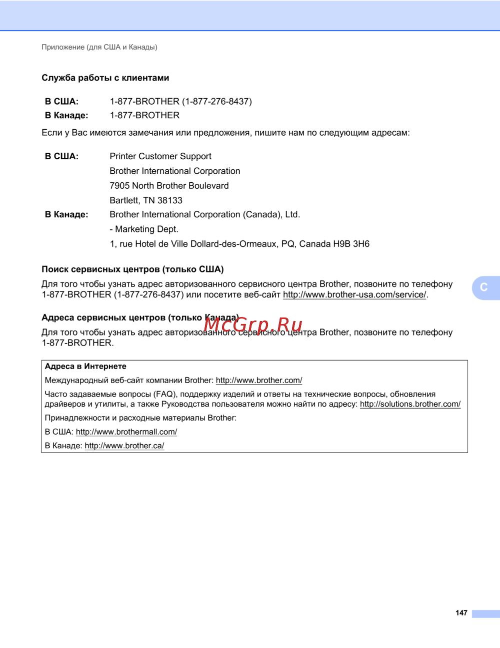 1-877-BROTHER (1-877-276-8437) или посетите веб-сайт http://www.brother-usa.com/service/