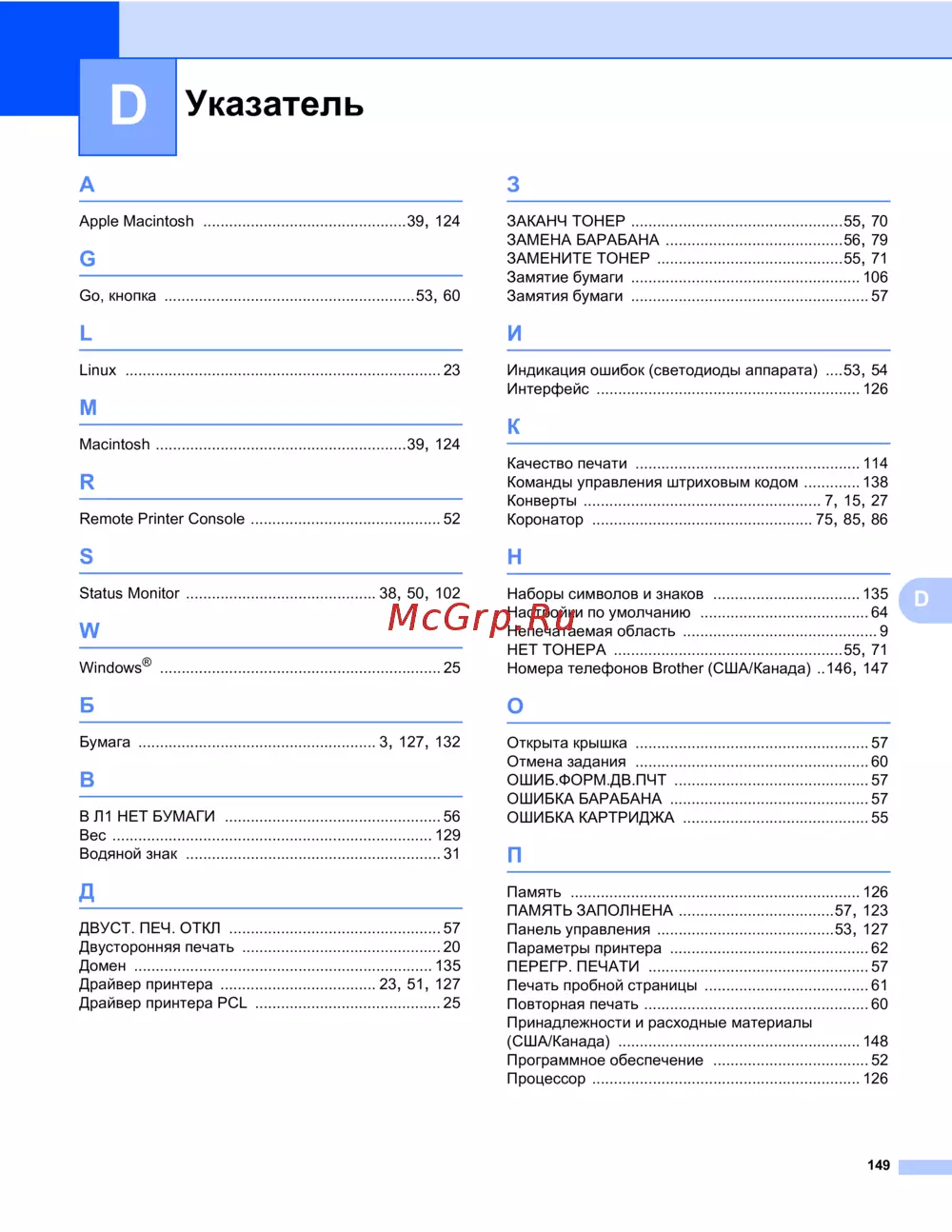 Brother HL-2130R — полный указатель функций и ошибок принтера [153/154]