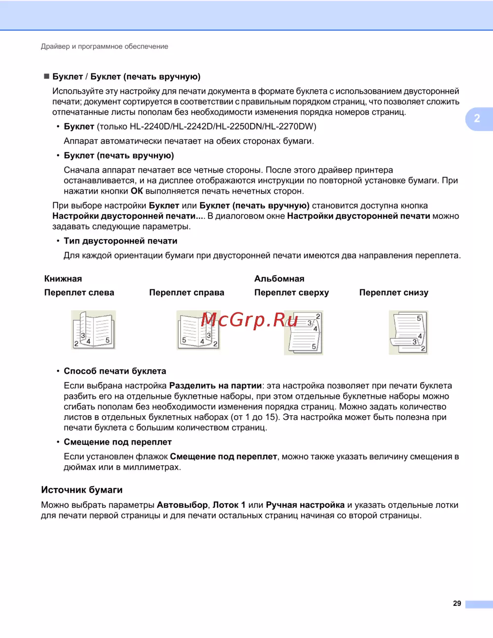 Brother HL-2130R — настройки печати буклетов: двусторонняя печать и параметры [33/154]