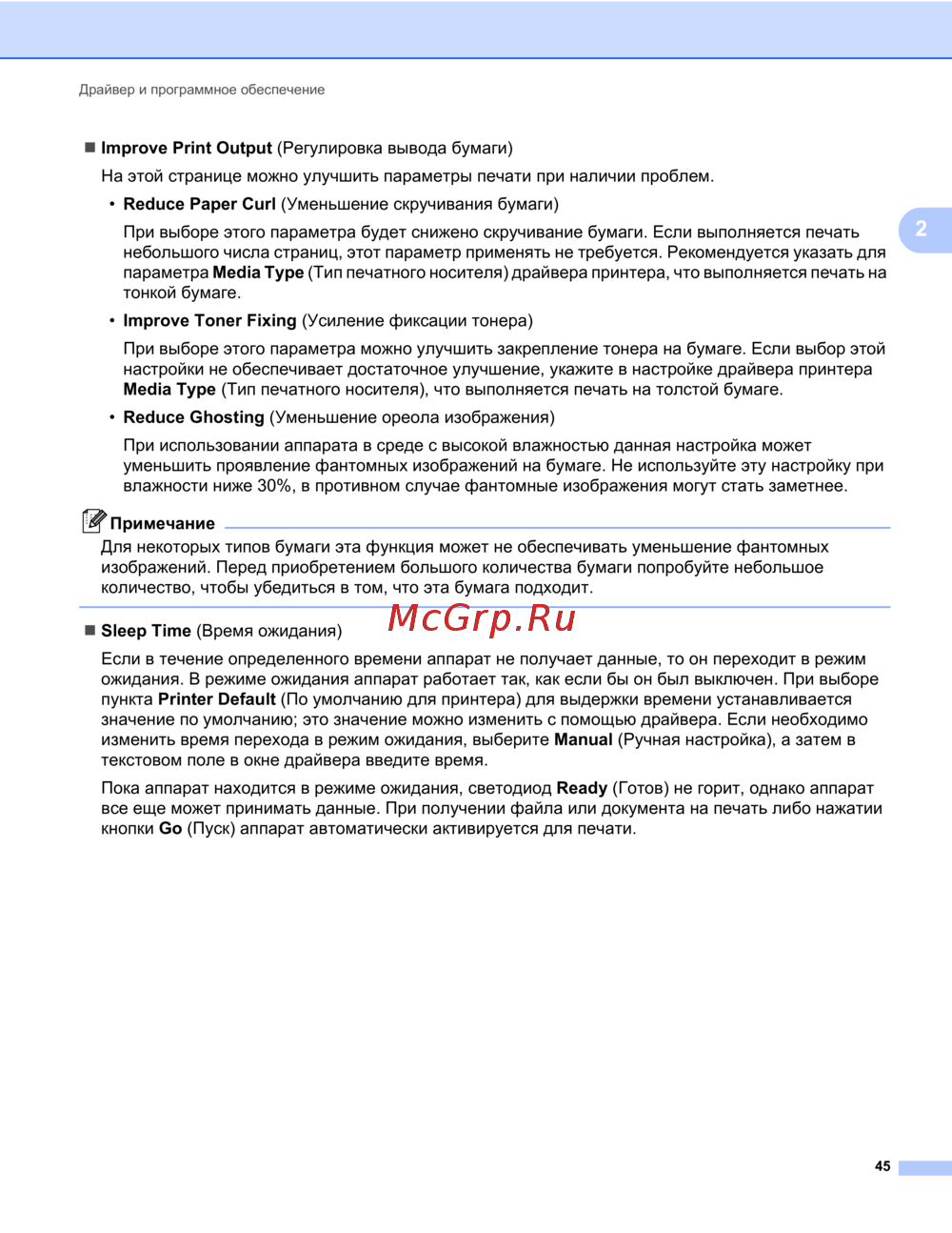 • Reduce Paper Curl (Уменьшение скручивания бумаги)