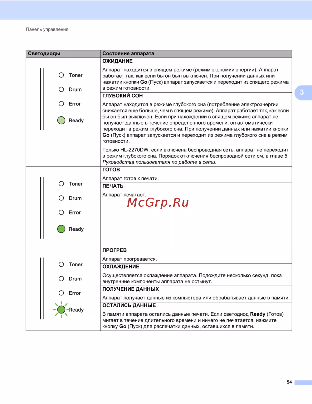 Brother HL-2130R — управление режимами работы аппарата: от ожидания до печати [58/154]