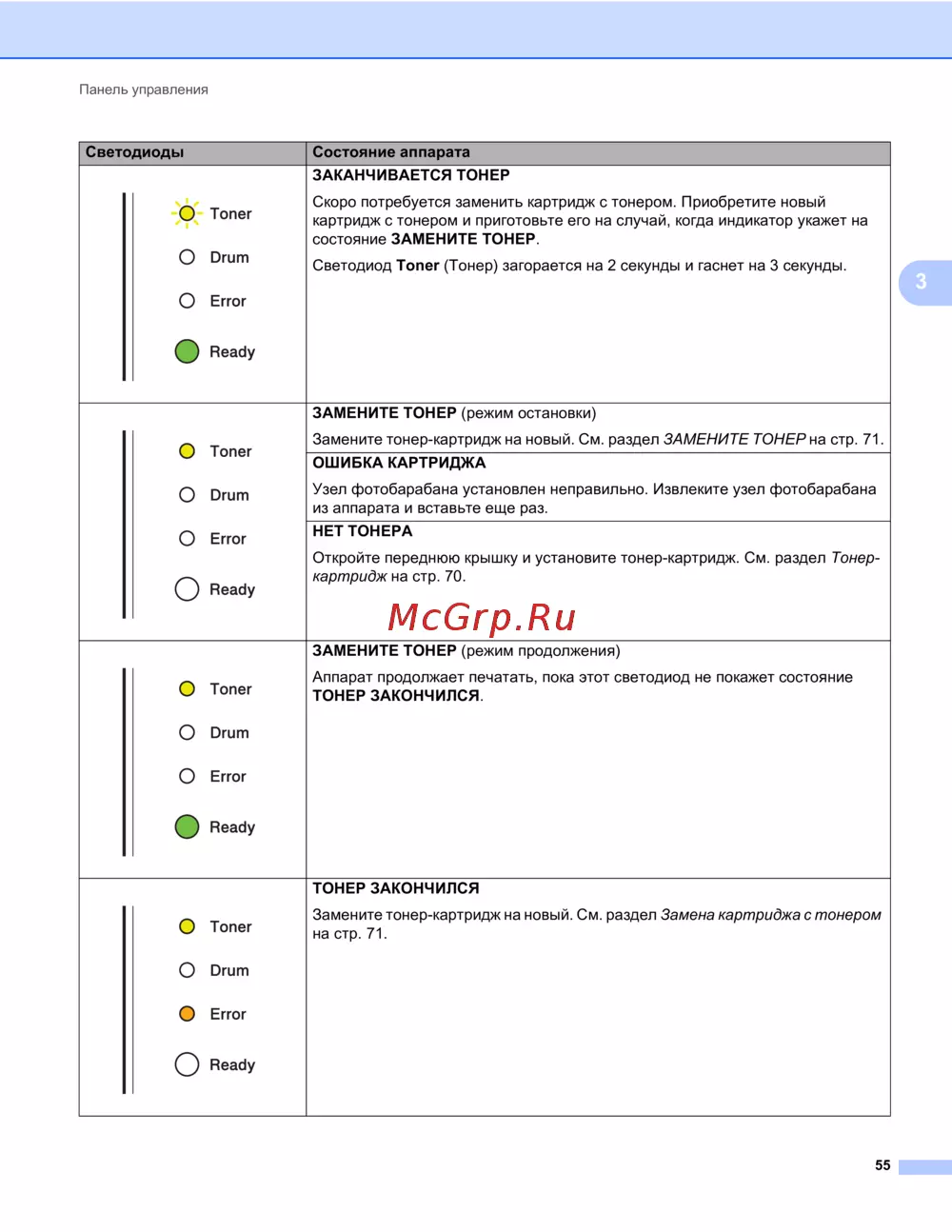 состояние ЗАМЕНИТЕ ТОНЕР.