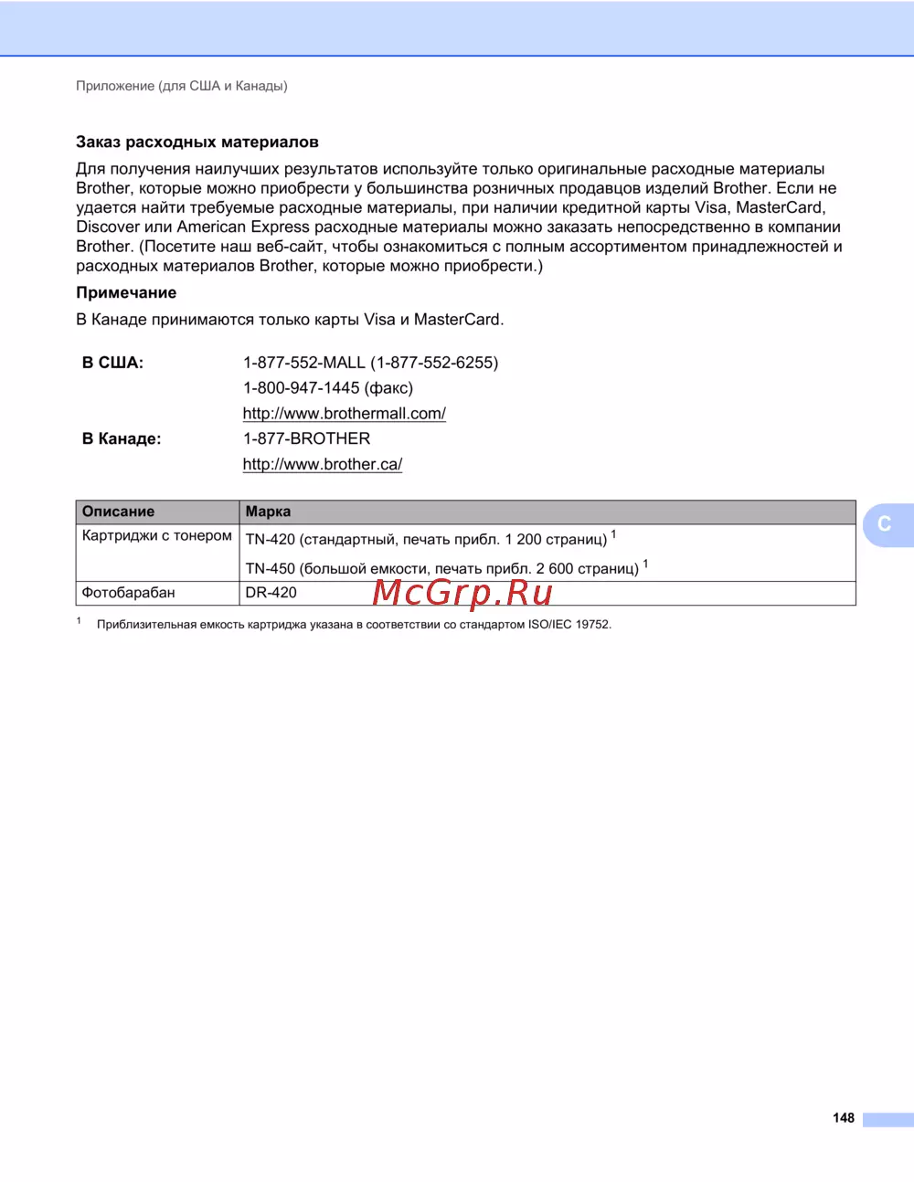 Brother HL-2132R — заказ расходных материалов для печатающих устройств в США и Канаде [152/154]