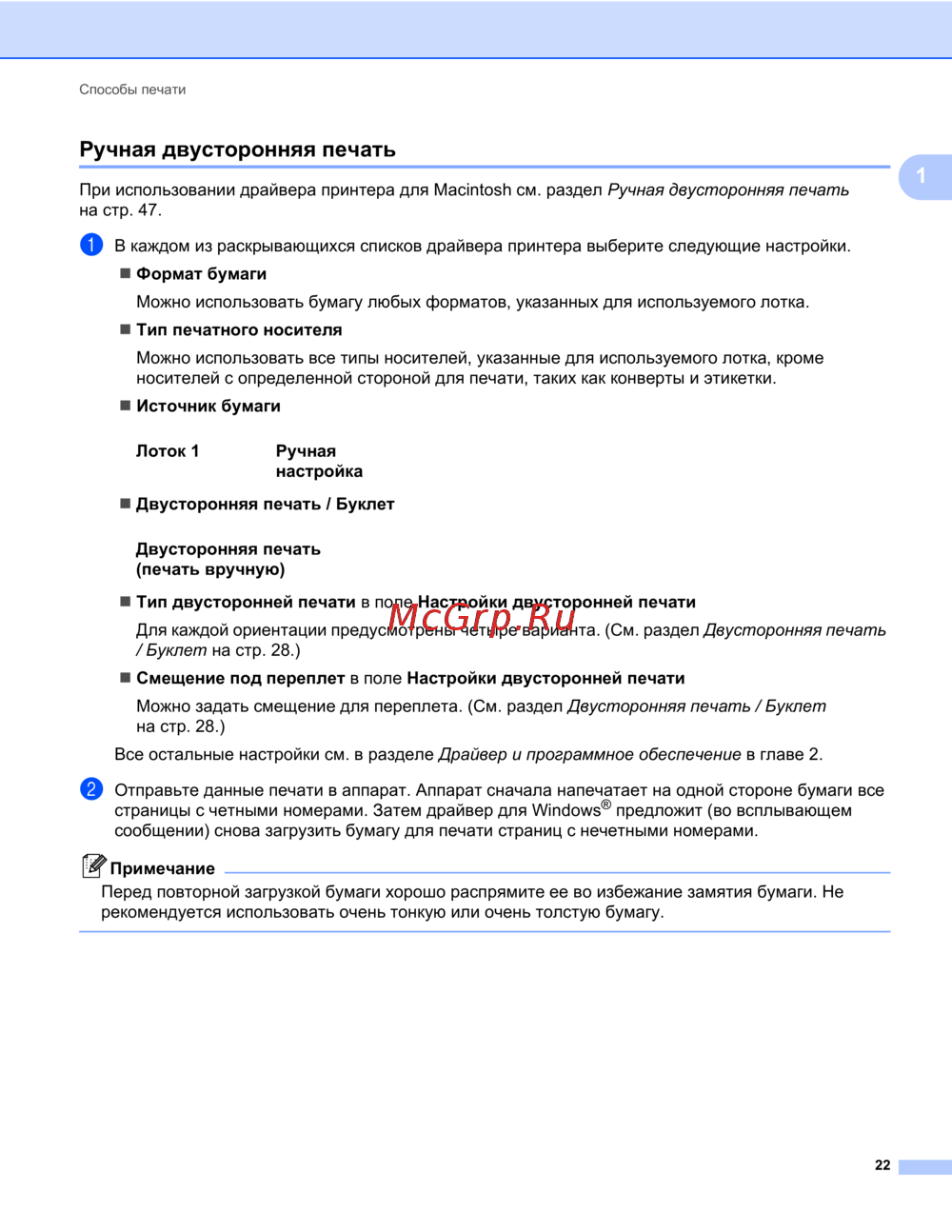 При использовании драйвера принтера для Macintosh см. раздел Ручная двусторонняя печать