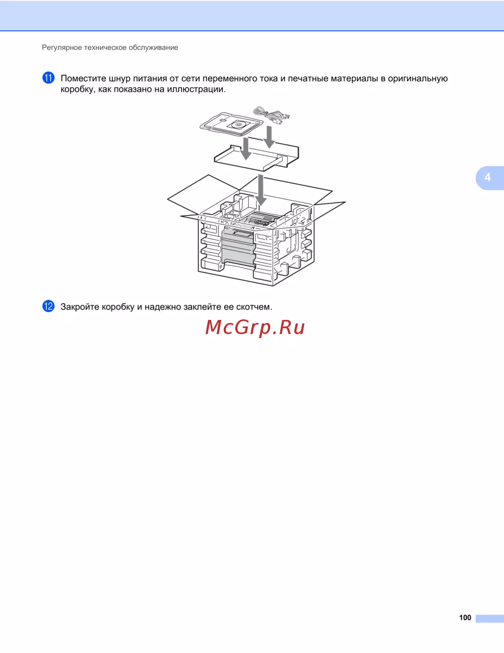 k Поместите шнур питания от сети переменного тока и печатные материалы в оригинальную