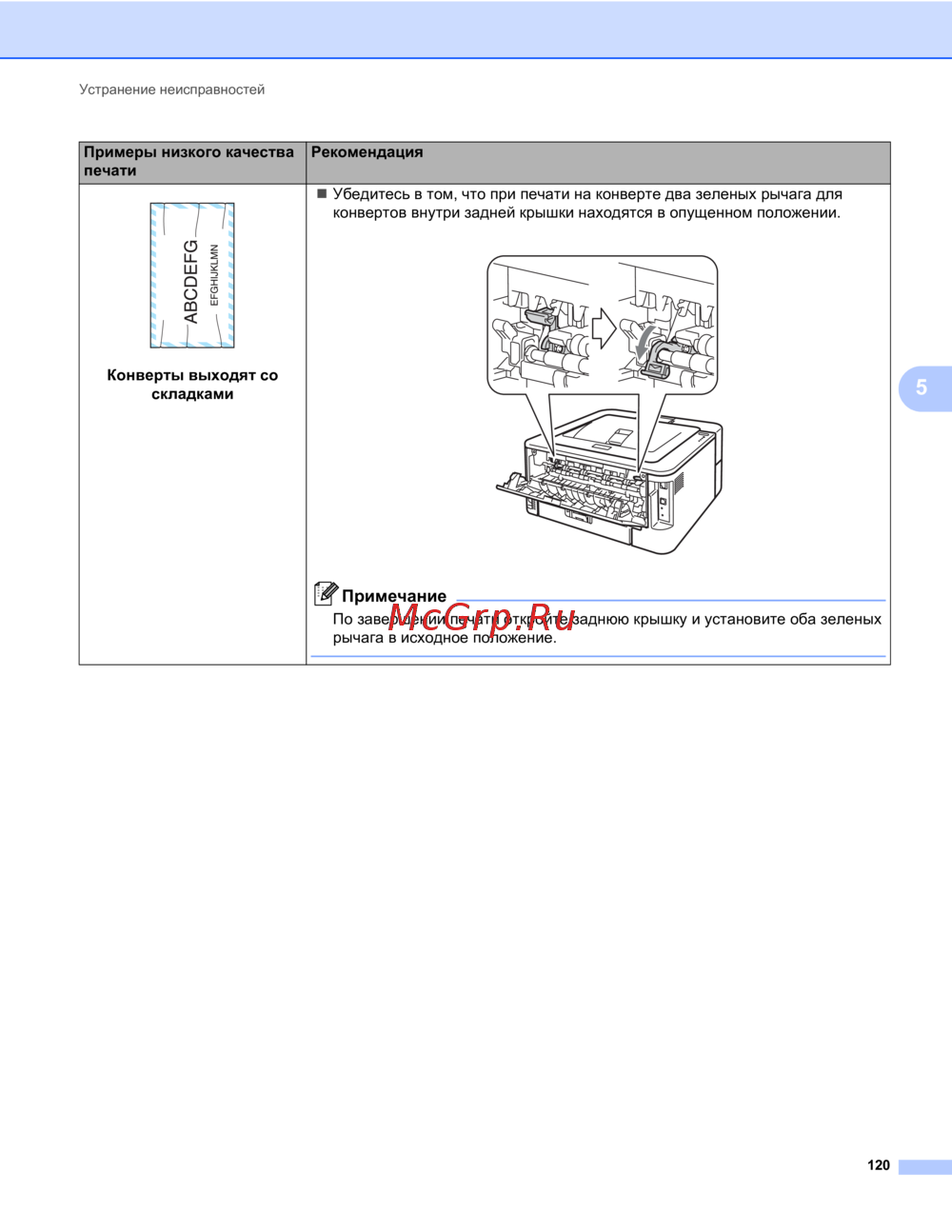 Убедитесь в том, что при печати на конверте два зеленых рычага для