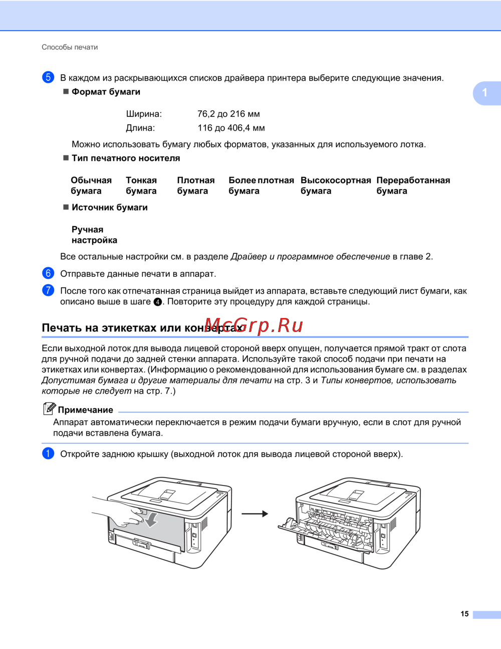 Brother HL-2230 — руководство по настройке печати и выбору бумаги [19/154]